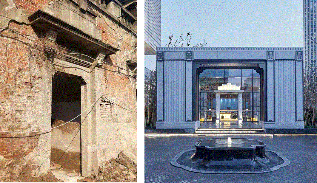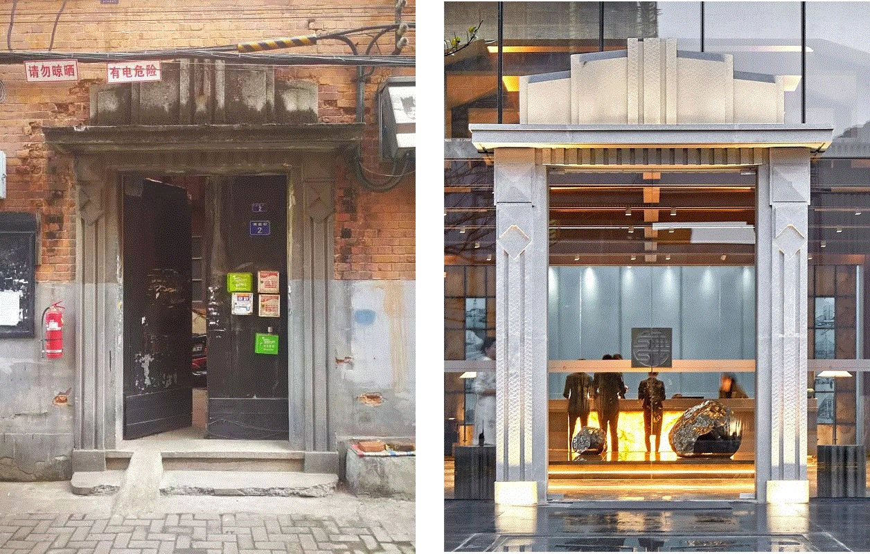 眼前复刻的咸安坊老牌坊门头带领来客穿越时空,感受老汉口风情,从历史街坊中感受传统文化之思。随着游走动线,复刻老宅户门配合景观廊道,自然转换空间关系,实现移步异景。隐于内的庭院更别有一番韵味,给空间带来丰富的视觉感。