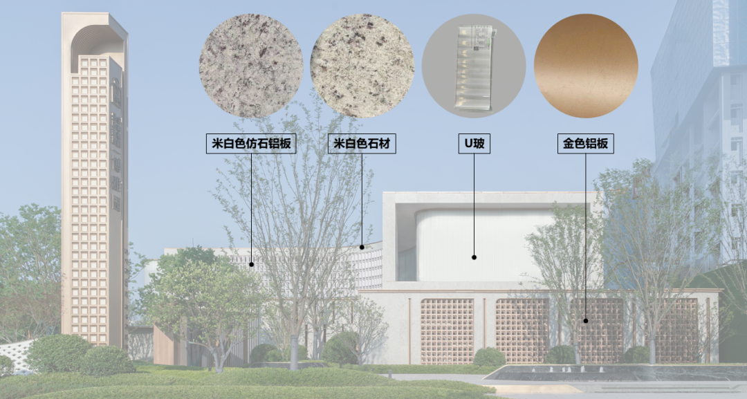 示范区形体与城市图书馆相呼应,二层悬挑又可与图书馆进行视线对话,在浅米色统一的基调之下,形成完整连续的城市界面。