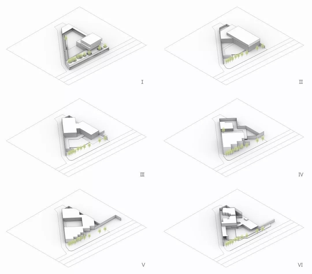 基地边界范围内局促紧凑的特点起初为设计带来难题,如果将其转换成空间社会学的视角,“小”通常又是最有效率的,城市的中心机会也往往是向着相对小的空间展开的。