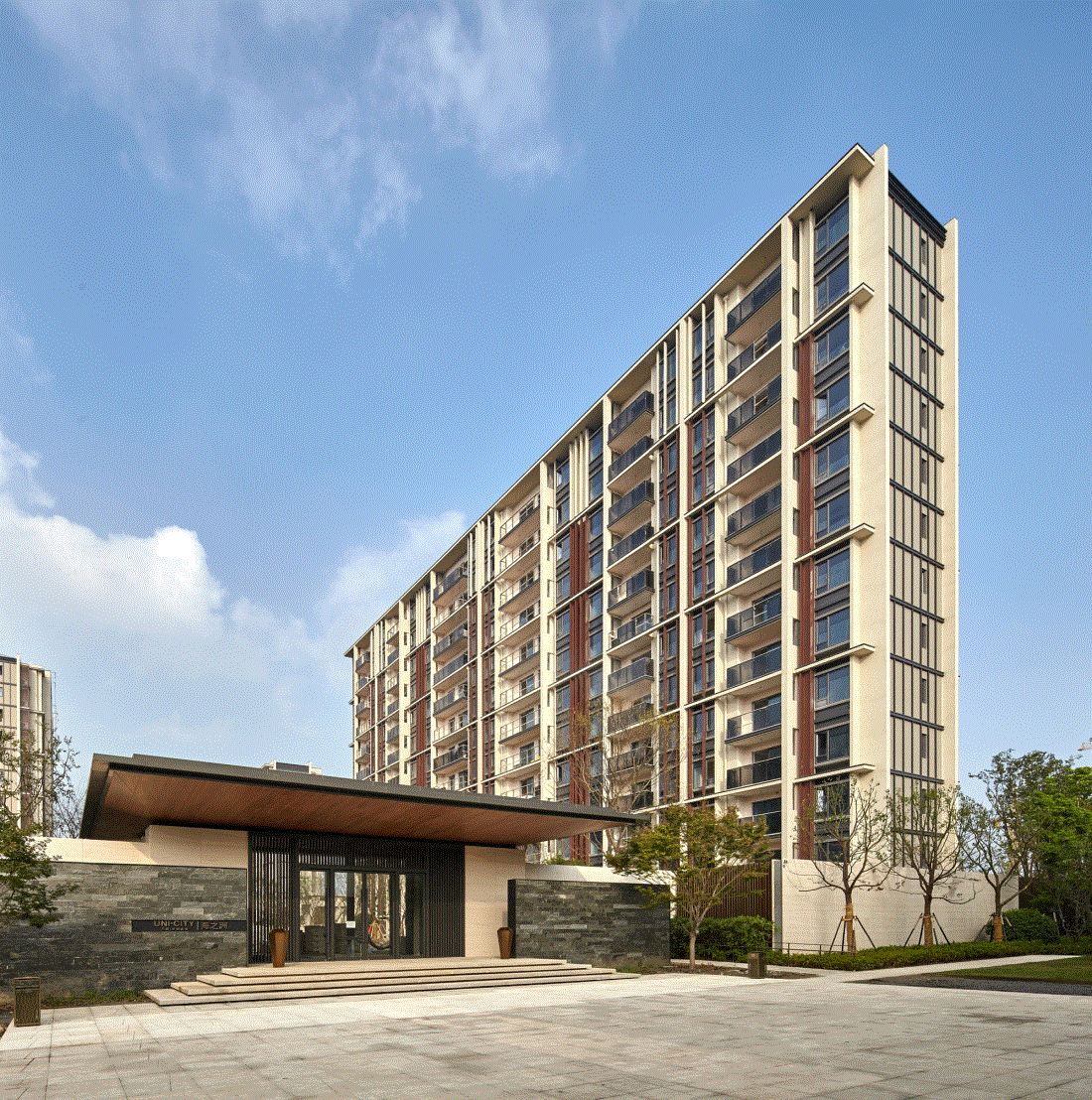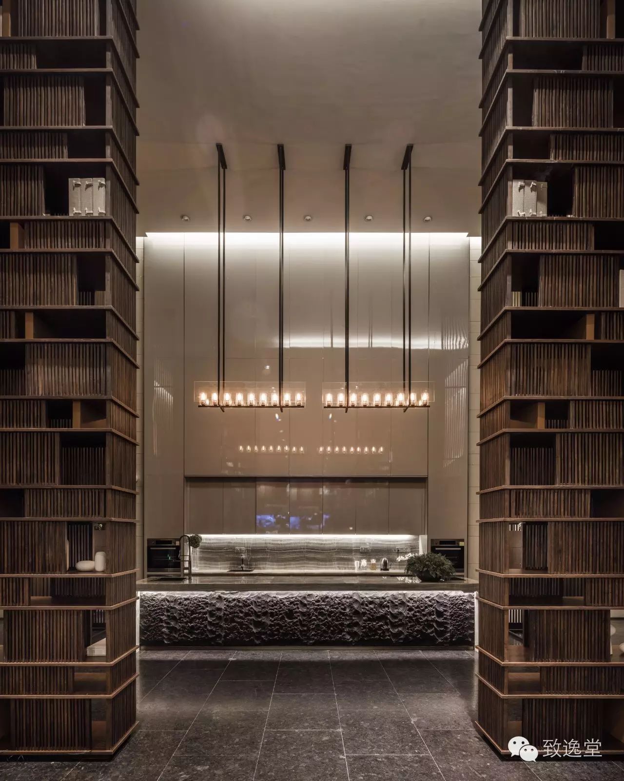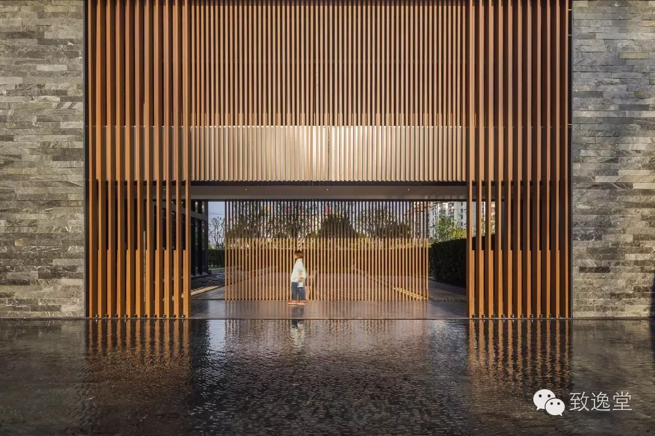 我们将“一”的理念,深深植入了进来。统一的竖向符号和肌理,从始至终地贯穿于景观、建筑、室内装饰,乃至一草一木,也延续了这一主题。