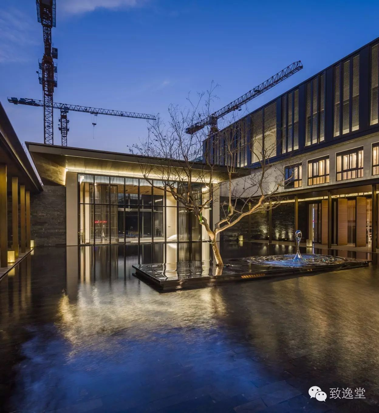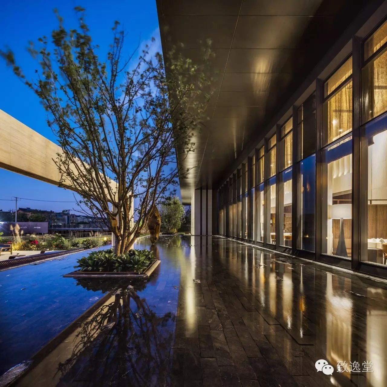 整个示范区大面积的无边水池与建筑相连,使得倒影下的建筑更具美感,或虚或实,亦假亦真,是景观与建筑完美结合的最好诠释。