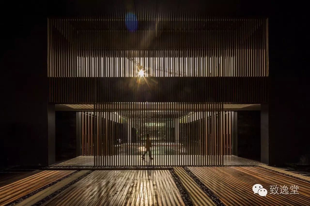 设计中木格栅的运用,于水、于光做了不同的尝试。通过空间的切割,让光影的变化显得极具层次。同时,格栅的运用解决了很多立面的问题。