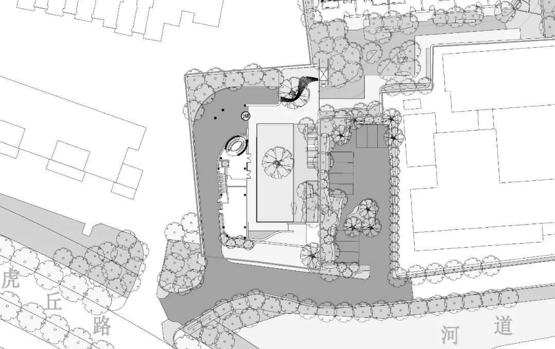 因用地沿革的历史因素,位于基地西南一隅的主入口,处在极为局促的不利条件之下,却必须满足消防、交通、未来城市客厅等多重功能要求。与基地近在咫尺的留园是中国小型园林的代表作,其格局承继宋以来山水画精神——“以小观大”。