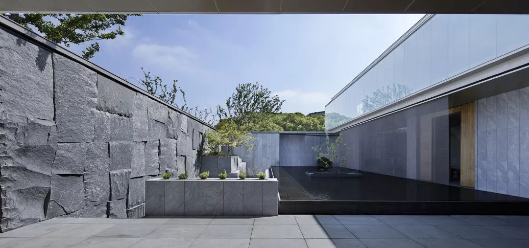 ◎(左)苏州园林山石;设计师最着力之处之一是对下沉庭院石屏的处理,千岩竞秀满足对山的想象,使观者得复返自然之境。