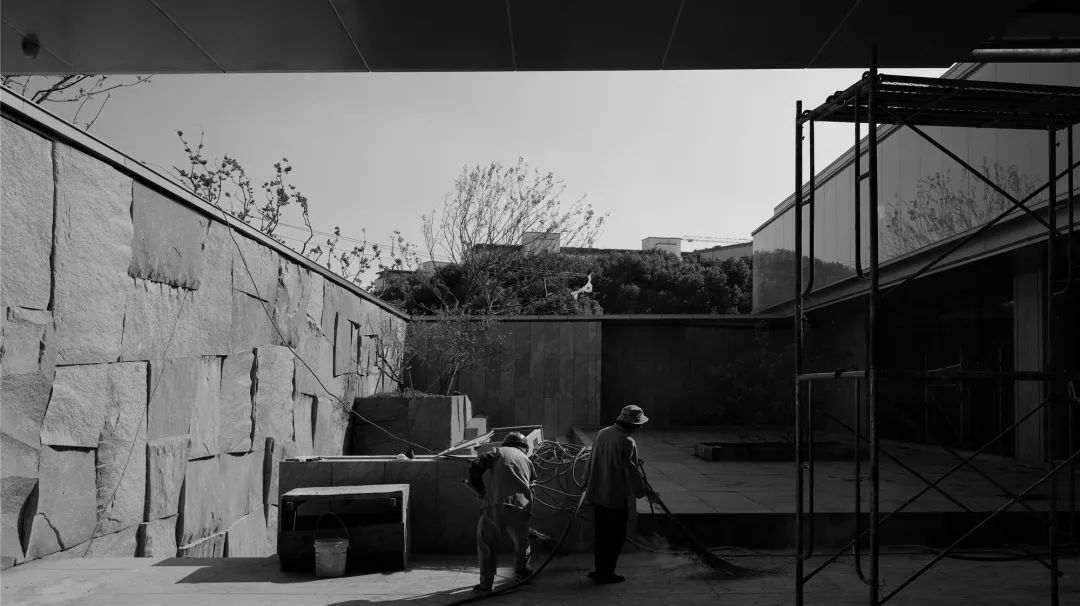 叶圣陶曾在《苏州园林》中提及造园技艺,“可以说是一项艺术而不仅是技术……全在乎设计者和匠师们生平多阅历,胸中有丘壑,才能使游览者攀登的时候忘却苏州城市,只觉得身在山间”。尽管选材、切割巨大的原石、盲吊势必为设计和施工增加额外的难度,设计师最着力之处之一是对下沉庭院石屏的处理,千岩竞秀满足对山的想象,使观者得复返自然之境。