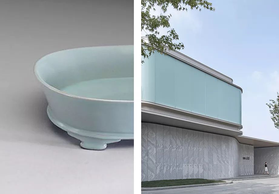 ◎(左)汝瓷局部;汝窑青瓷的颜色,是建筑立面的颜色灵感来源。
