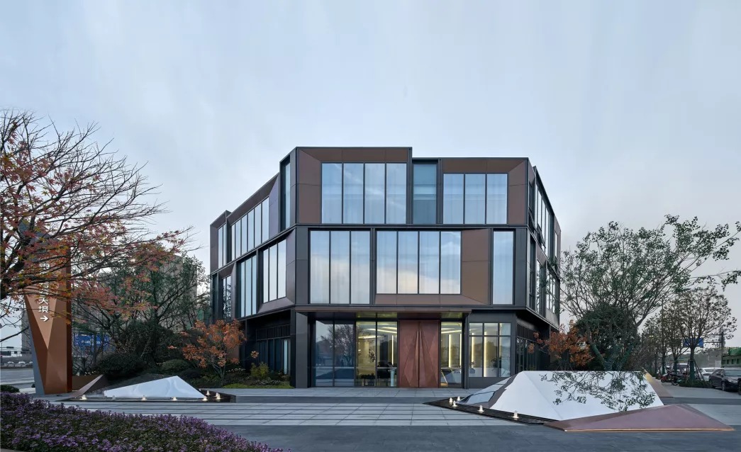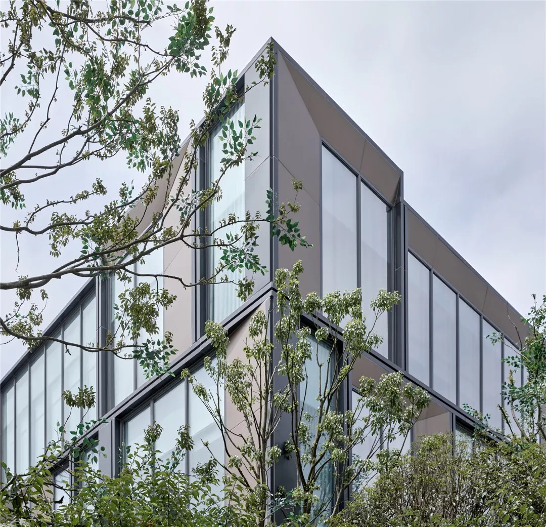 玻璃轻盈通透,铝板稳重温暖,这两种不同特性的材料,通过不同维度的穿插排列组合,形成理性的空间序列和丰富的空间形式。