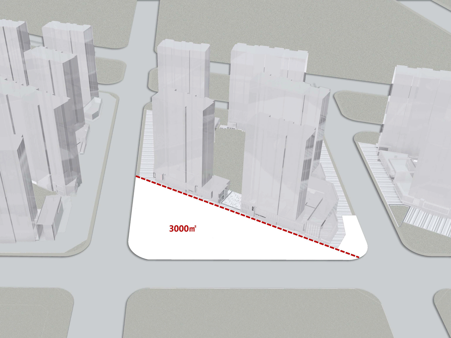面对仅有不到3,000㎡的局促用地,设计顺应整体规划的肌理,以T字形的平面布局缝合基地,用积极的态度预留更多弹性空间。我们希望营造一处集艺术展厅、城市公园、立体客厅、商业中心于一体的复合空间,回应现代城市的多向变化,从人性化的视角解读建筑与城市的关系。