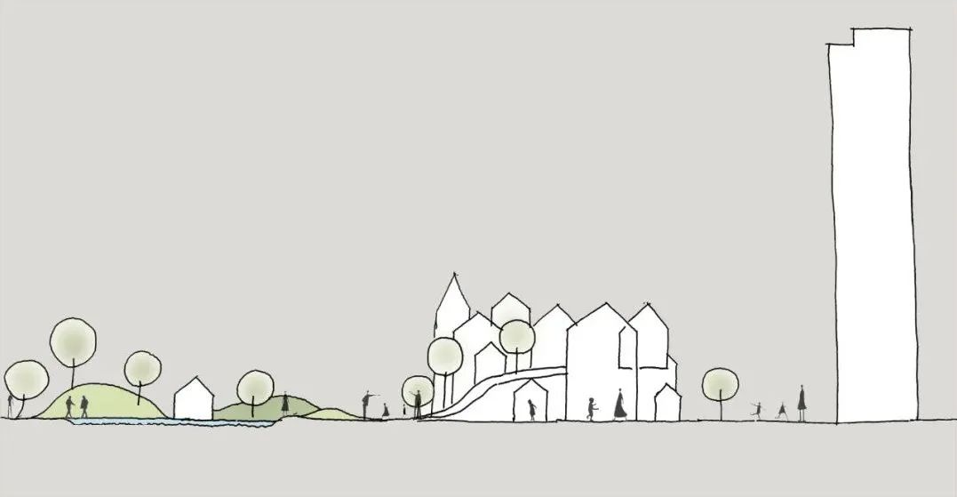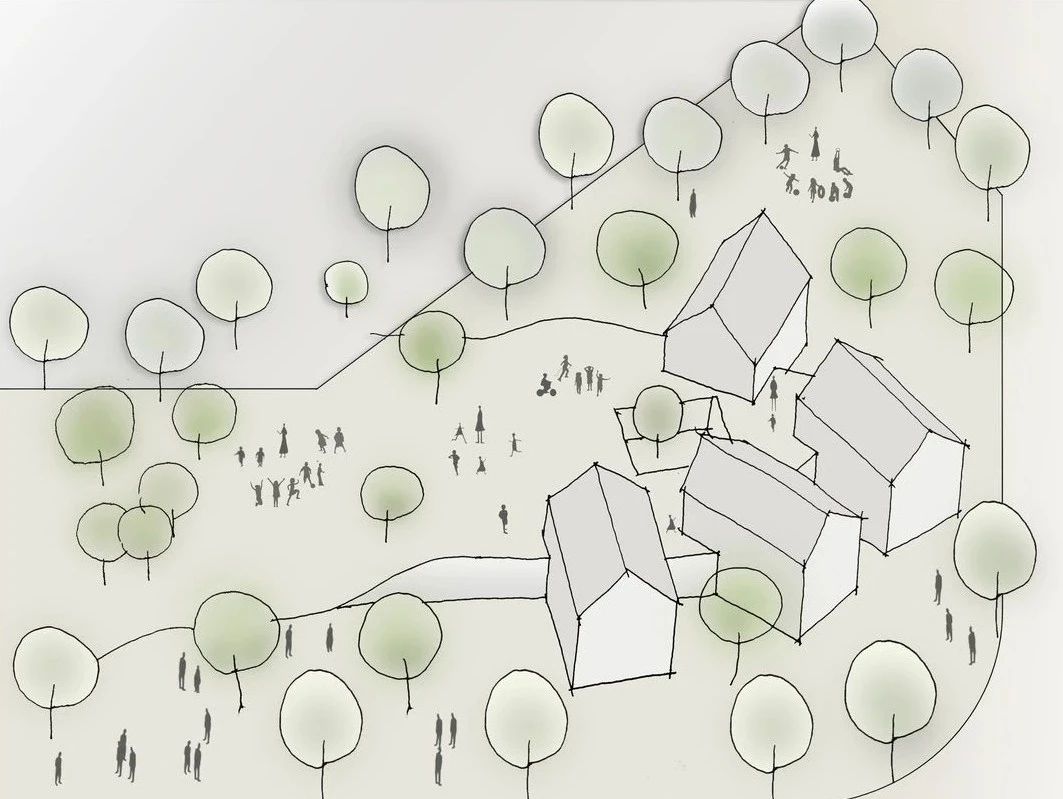 设计从多重限定的困境中提炼发挥空间,将教育理念与社区配套定位相结合。基于对城市环境友好的立意,我们提出“童话村庄”的设计概念,作为此次幼儿园空间设计的依据。