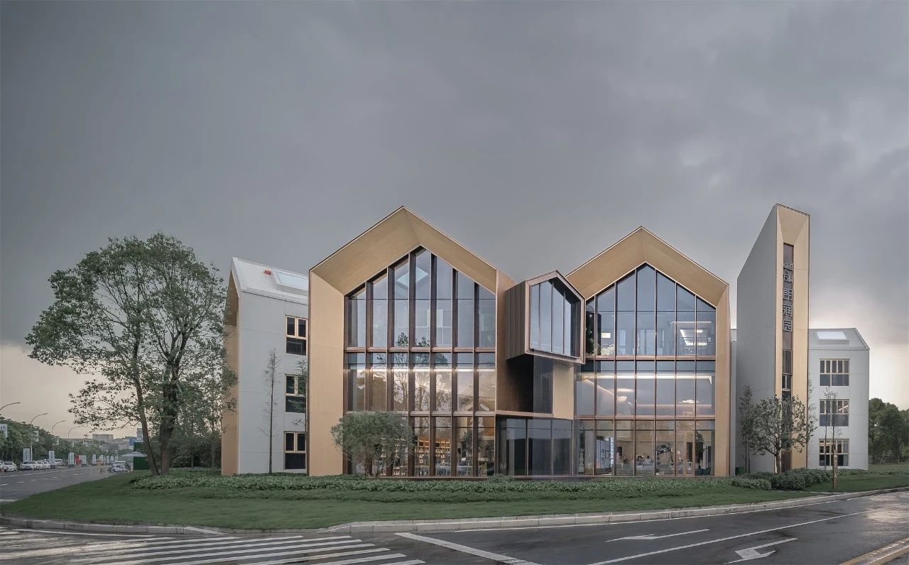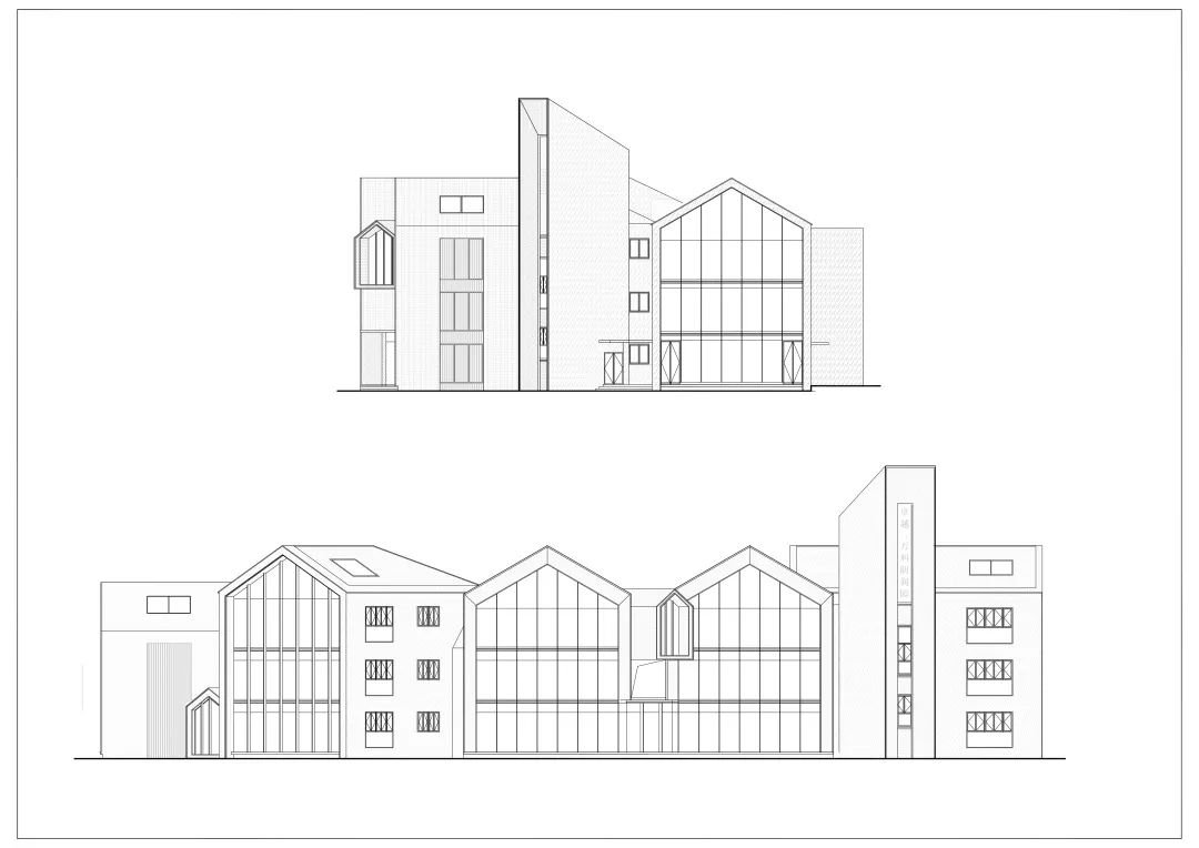 根据实际需要的班级数量与空间容量将整体划分近似比例的单元,通过主体块与小体量之间的穿插与错位,从户外空间过渡到建筑,形成有趣多变的景观平台与灰空间。