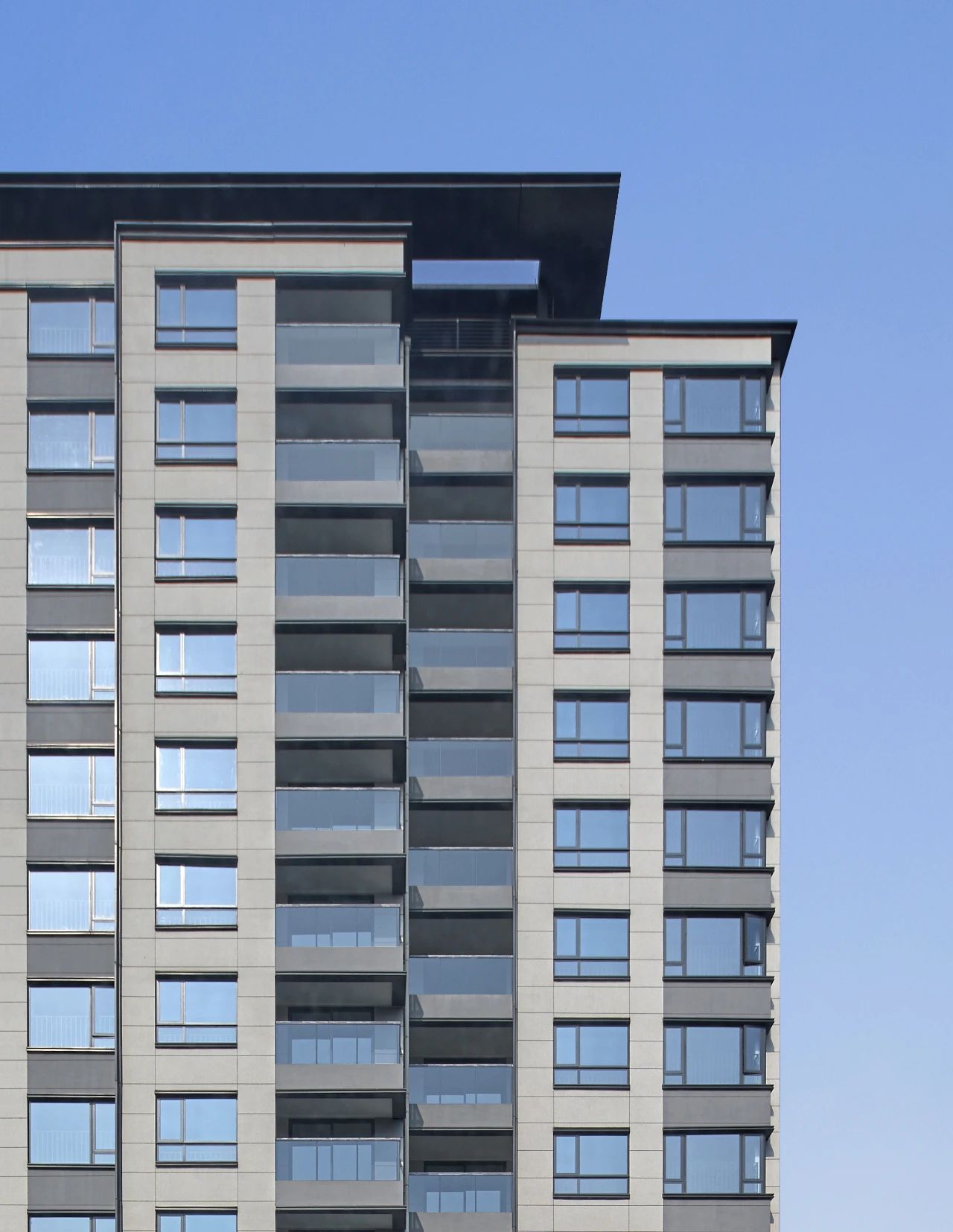 自持公寓部分的主体立面选用浅色大面、玻璃和横向线条结构等这些现代极简的设计元素,加之穿孔板排列方式的动态平衡,于细节处运用统一纯粹的处理手法,理性克制中不乏艺术美感。