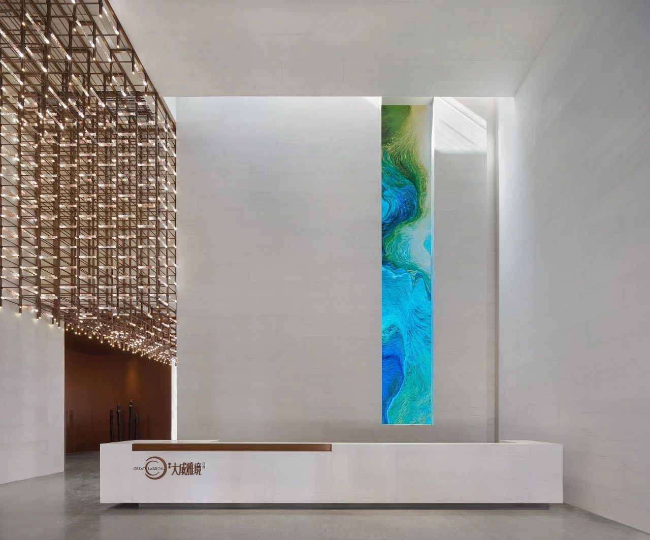 在建筑创作中,设计师不仅需要达到逻辑思维上的各要素的和谐,更需要非逻辑思维中的灵感与创造为设计增加独特的气质,同时关注空间与人之间的交互关系。大成雅境花园的设计立足于空间结构、材料和色彩的重组与调和,建筑与场所形成一种动态的和谐。