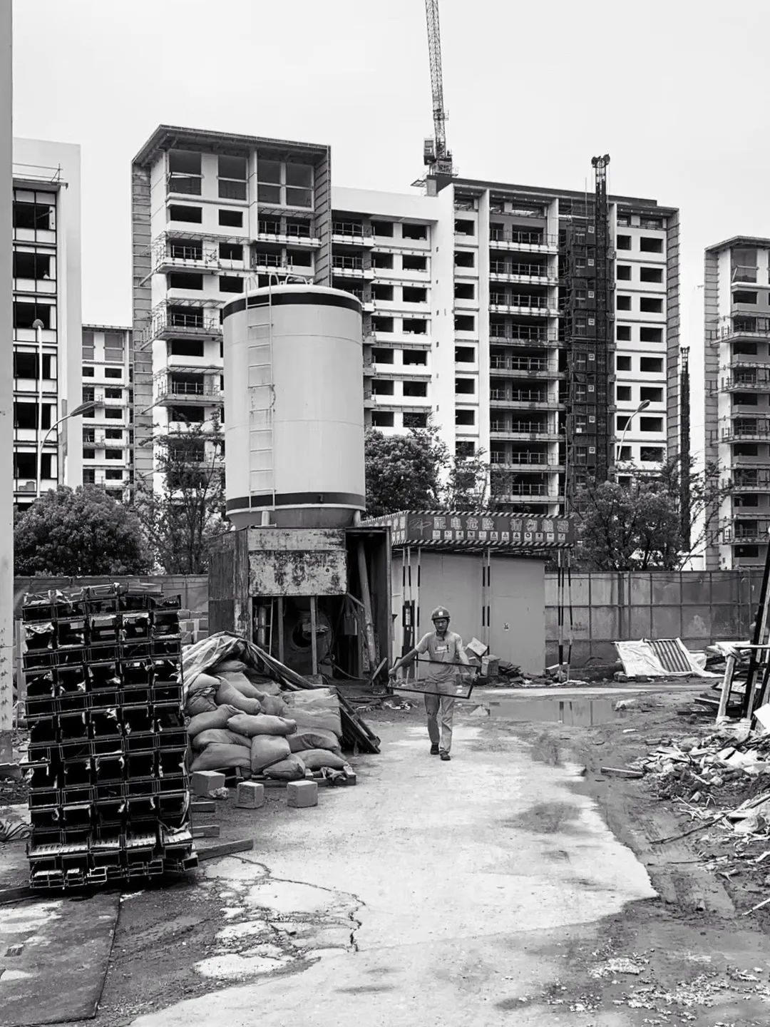 建造艺术同样由施工艺术家来呈现。我们也捕捉到了这场行为艺术中的身影。