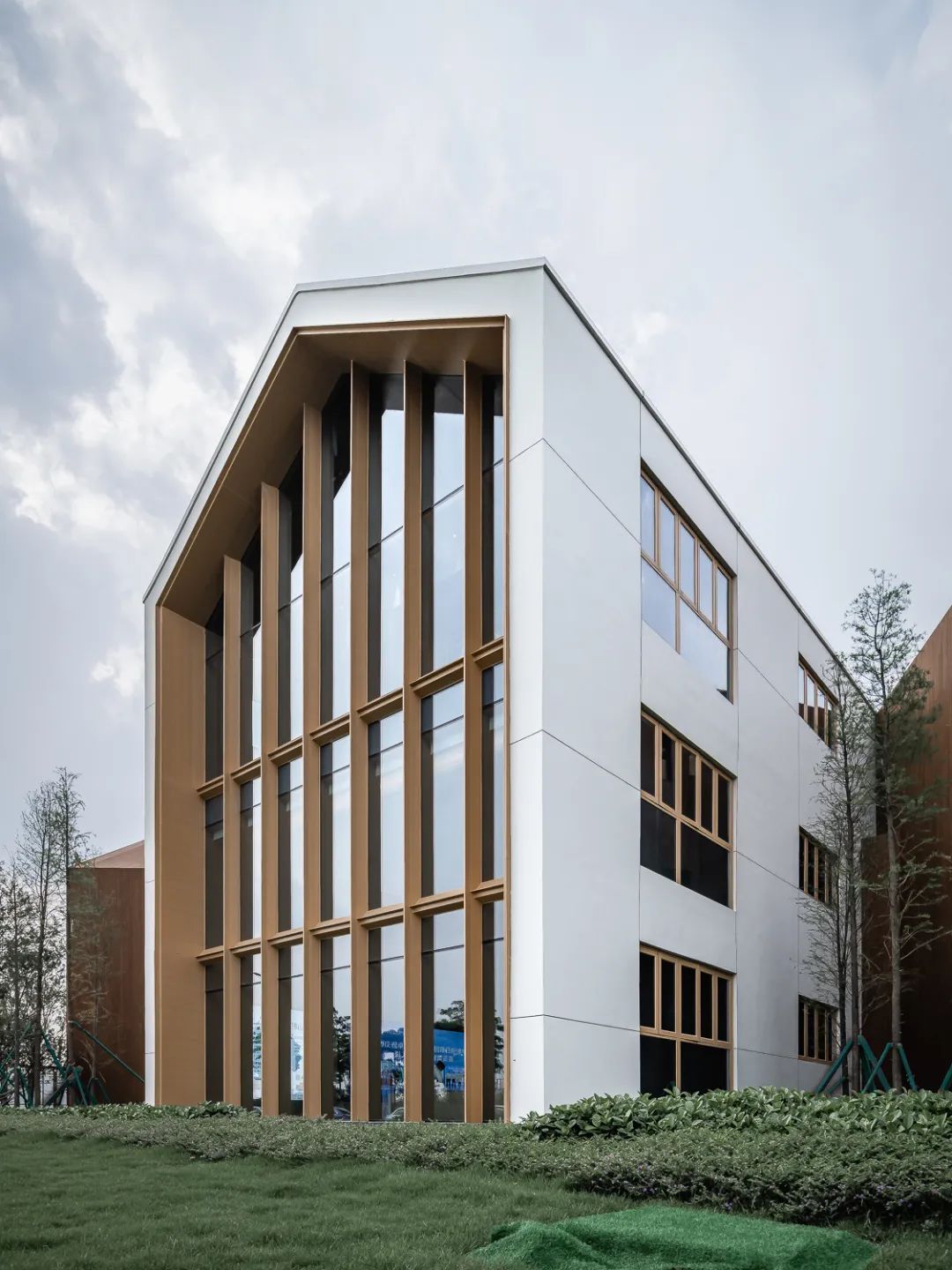 错落交叠的“小房子”,栖于湿地公园边,重回儿时过家家的场景。