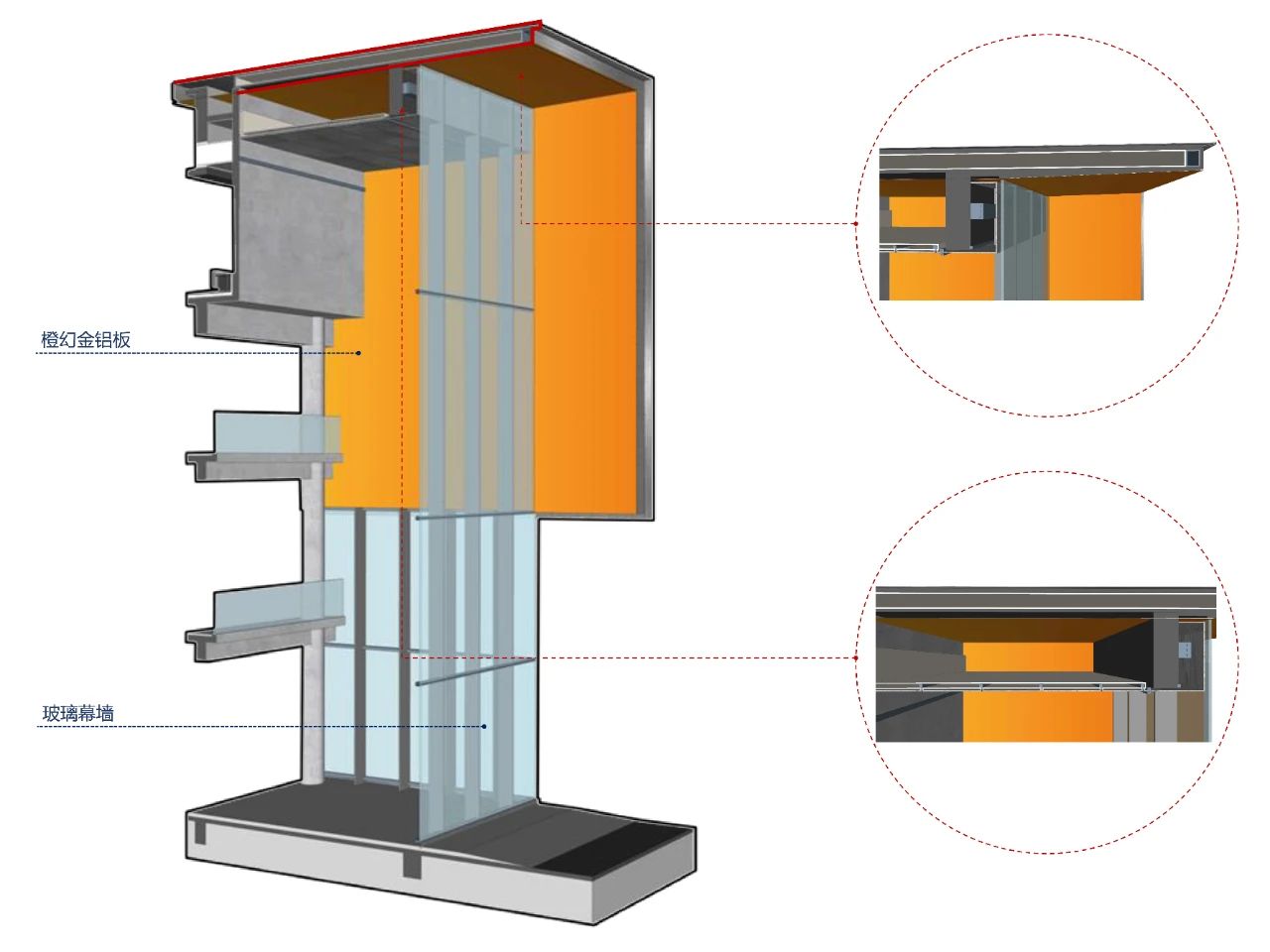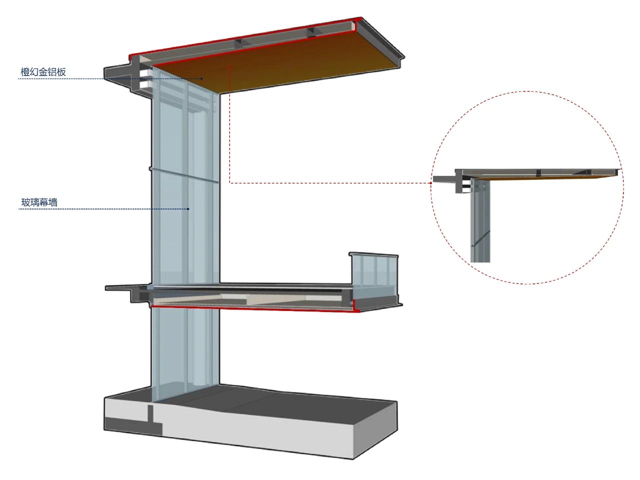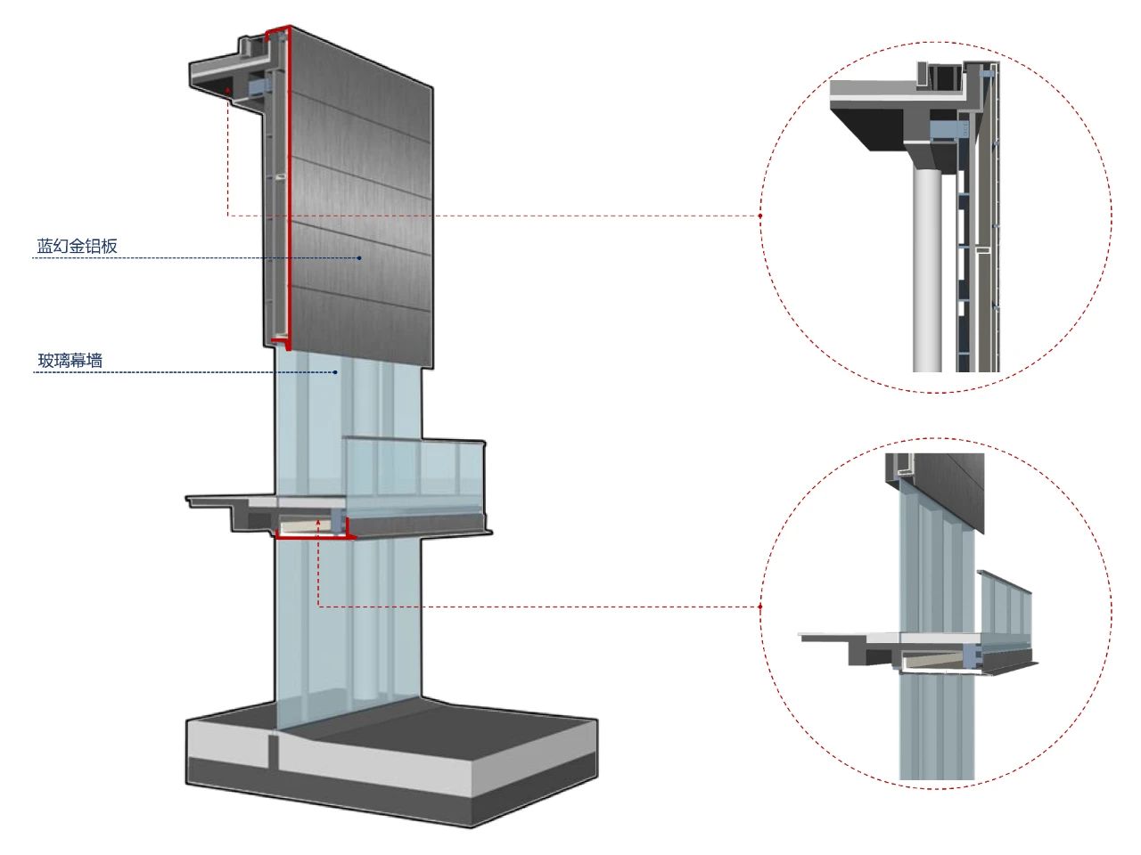 △幻彩铝板与玻璃幕墙细节剖面详图