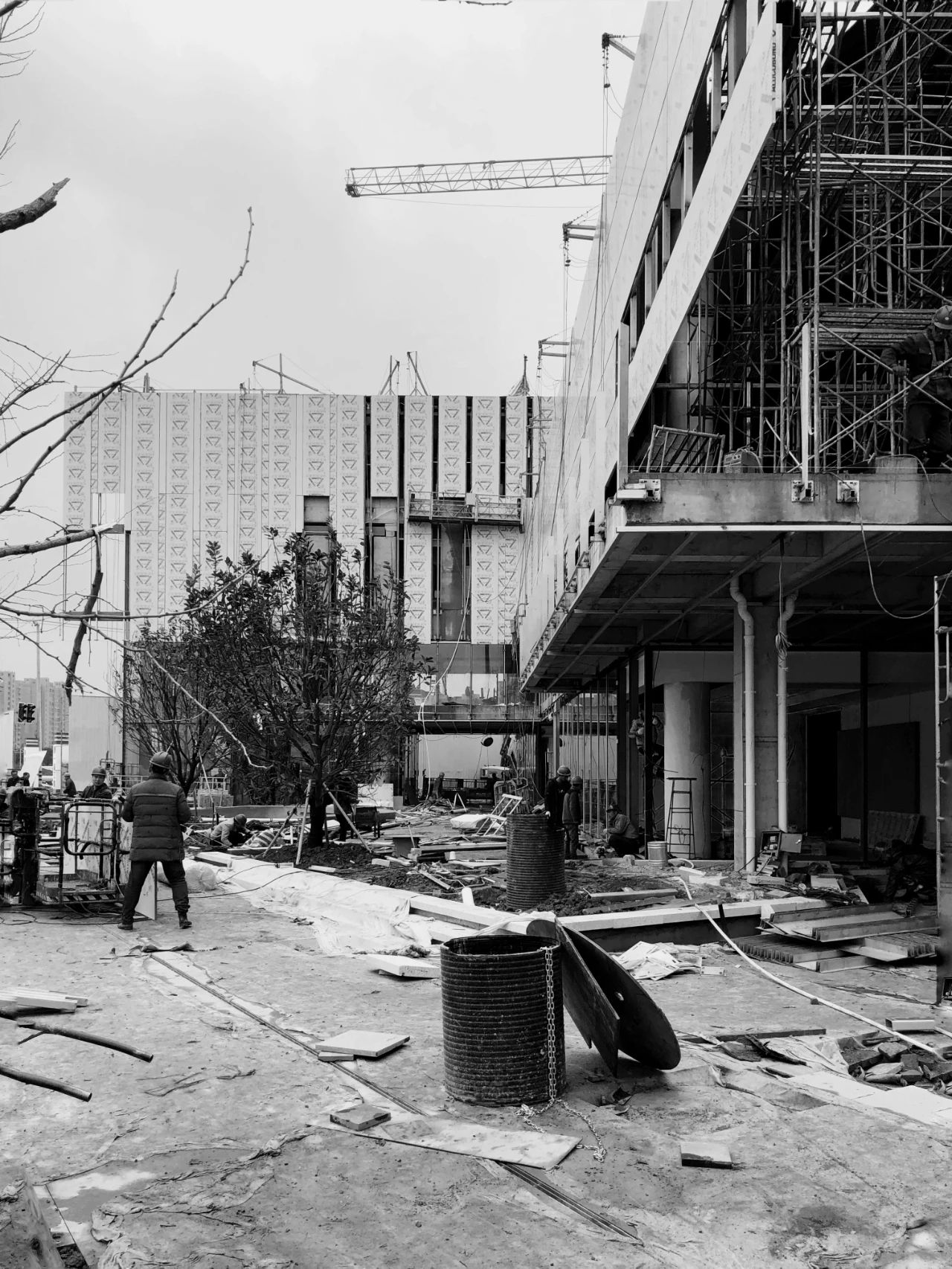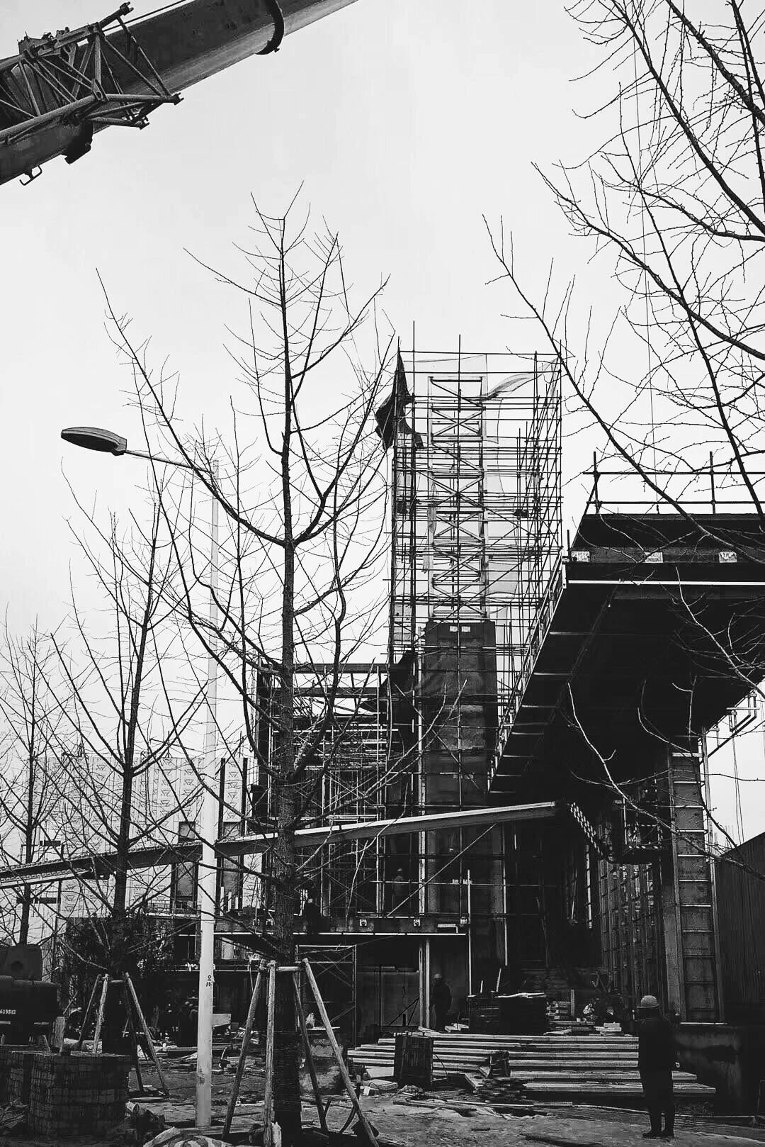 设计充分利用悬挑营造建筑整体的轻盈通透感,但前期确定的混凝土结构体系为其建造环节带来巨大的困难。于是,我们尽最大可能采用"隐藏"的策略,依托自身的构件体系作为受力支撑杆件。