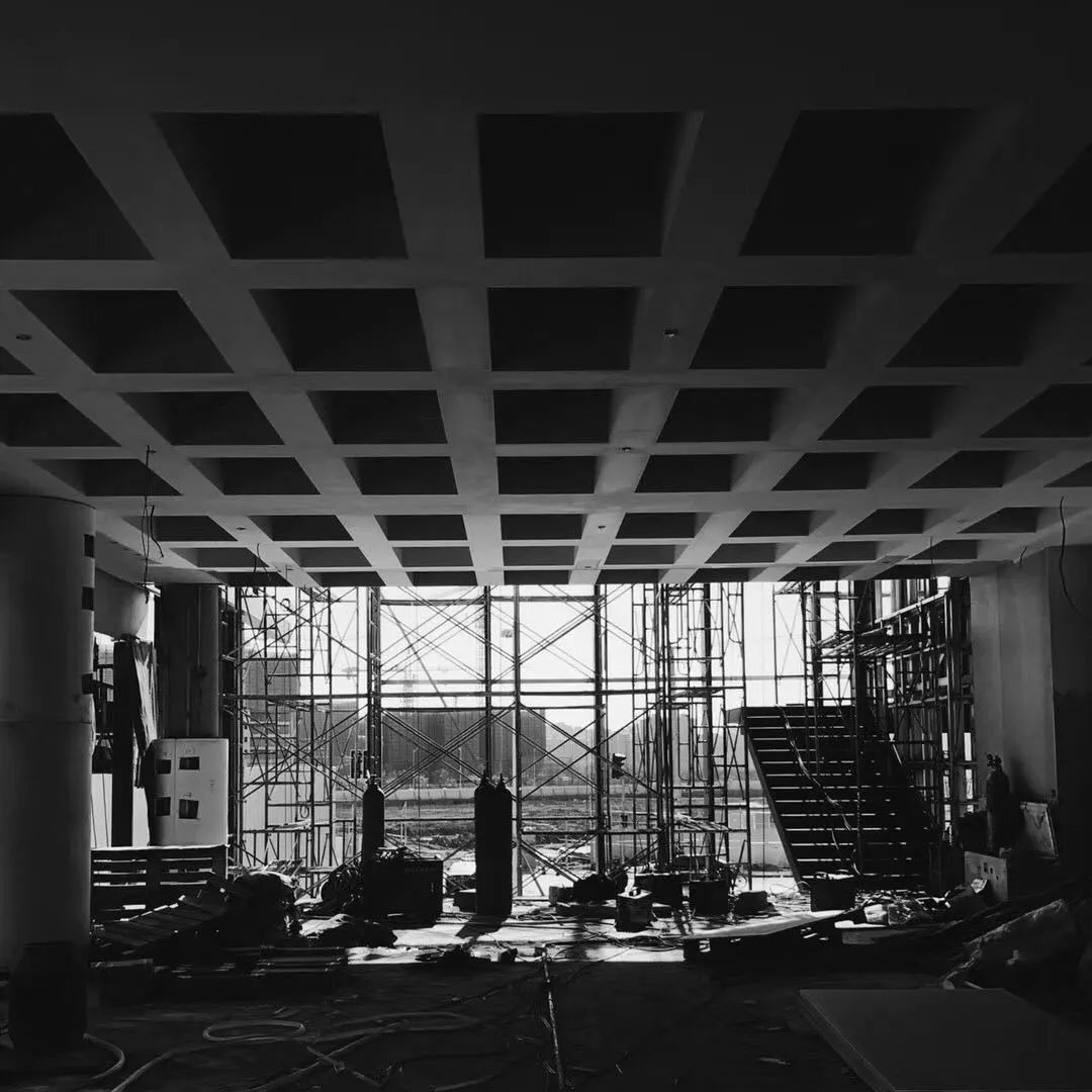 内与外的空间效应同样延展到建筑结构的突破之上。我们与室内方探讨配合,将唯一的受力支撑结构隐藏于楼梯内,形成四层16m的巨幕式挑空,巧妙增添了建筑的艺术性,从城市视角也放大了室内空间感与视觉张力。