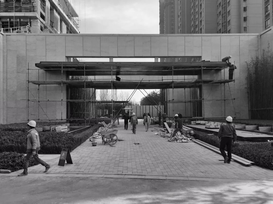 在施工建造过程中,起初由于地块的局促性限制,我们在施工现场调配上面临巨大的挑战,但经过与业主方、材料商、施工方的反复协调与配合,有效实现物料、预制结构、吊装调配等诸多困境。