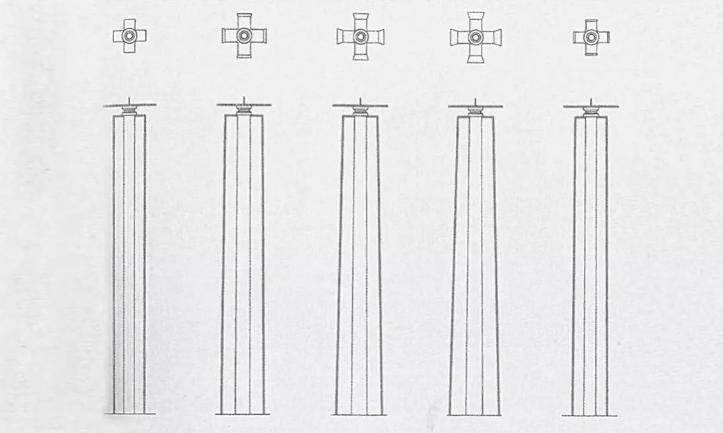 △柱子的尺度,Mies进行仔细的推敲选定了最右侧的形式