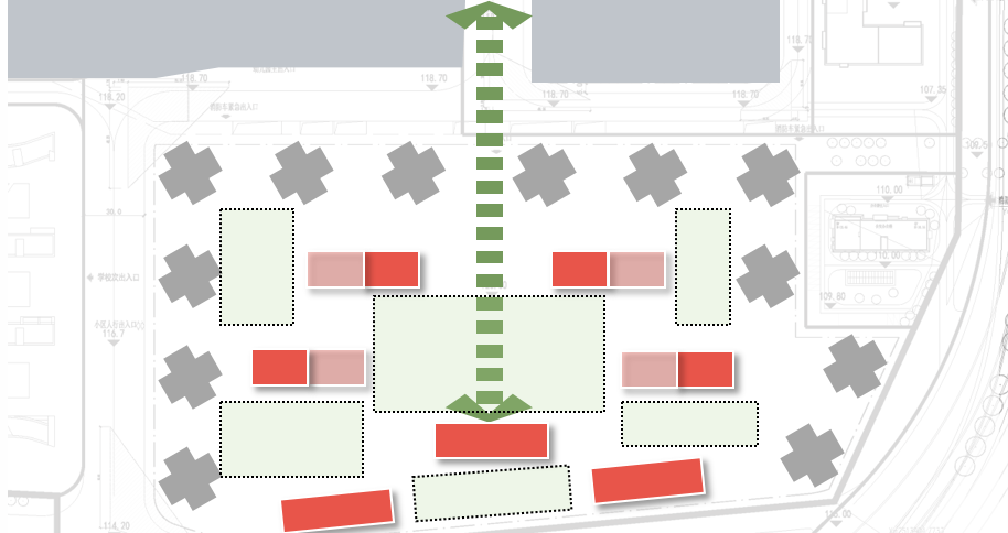 并同步置入步行体系进行串联