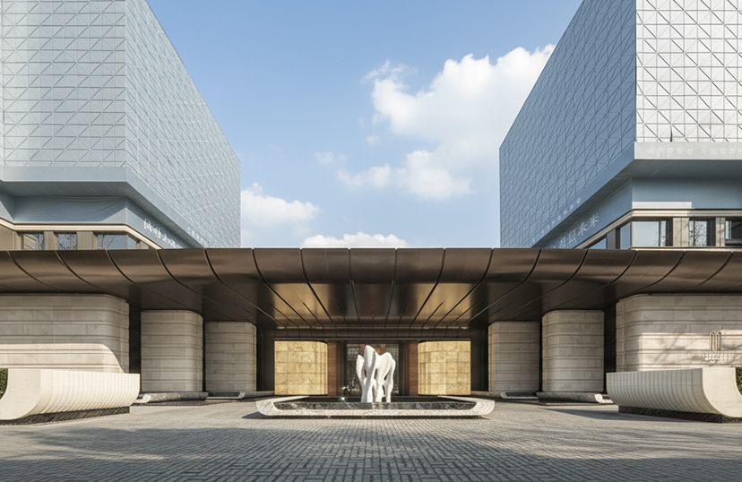 在这个日新月异的时代, 我们一面追寻着现代都市的繁华与便捷, 一面又在心底深处怀念那份传统的宁静与雅致。 新中式建筑就像一座桥, 连接着过去与未来, 让我们的生活既有城市的“根”与“魂”, 又能感受到现代工艺和空间魅力。 我们期望追寻中式文化的本源, 在空间营造上融通地域与边界, 塑造风雅繁盛,意境悠远的精神空间。