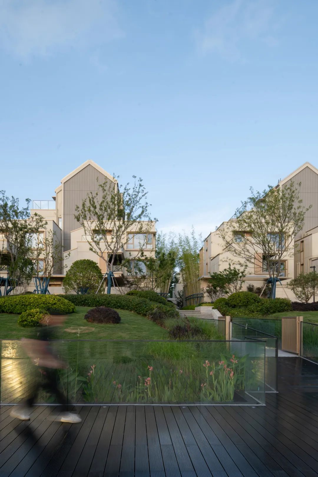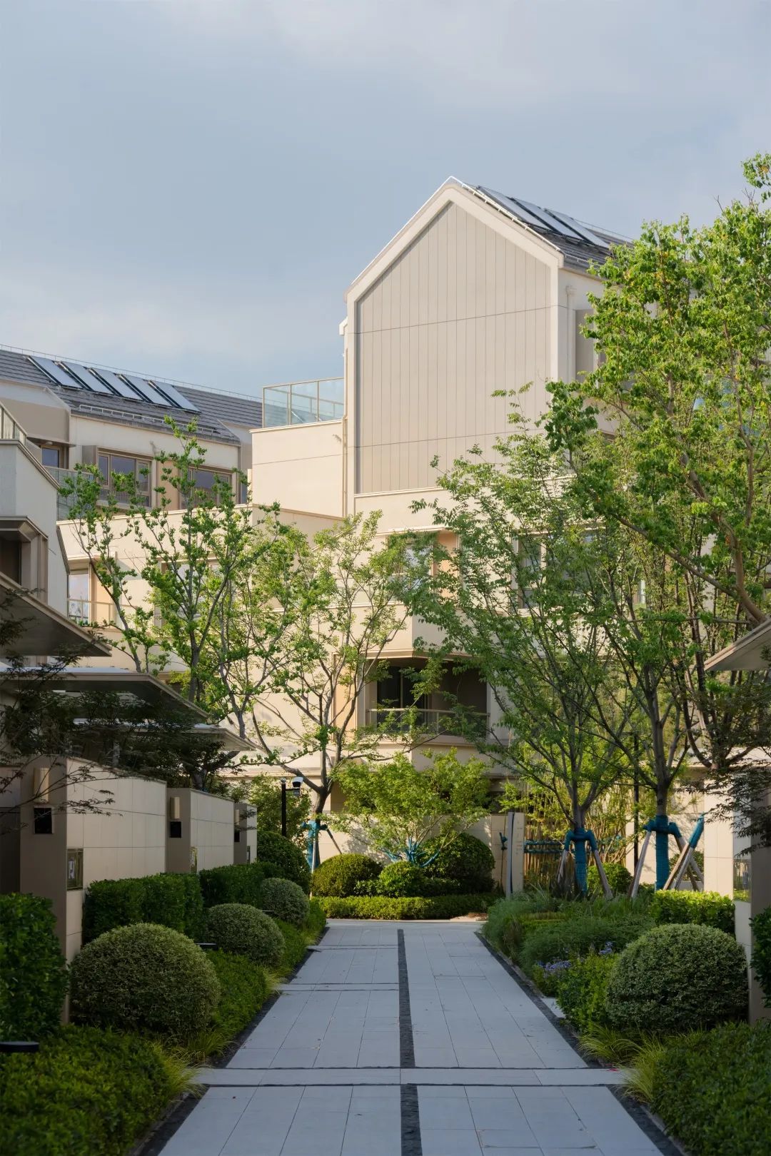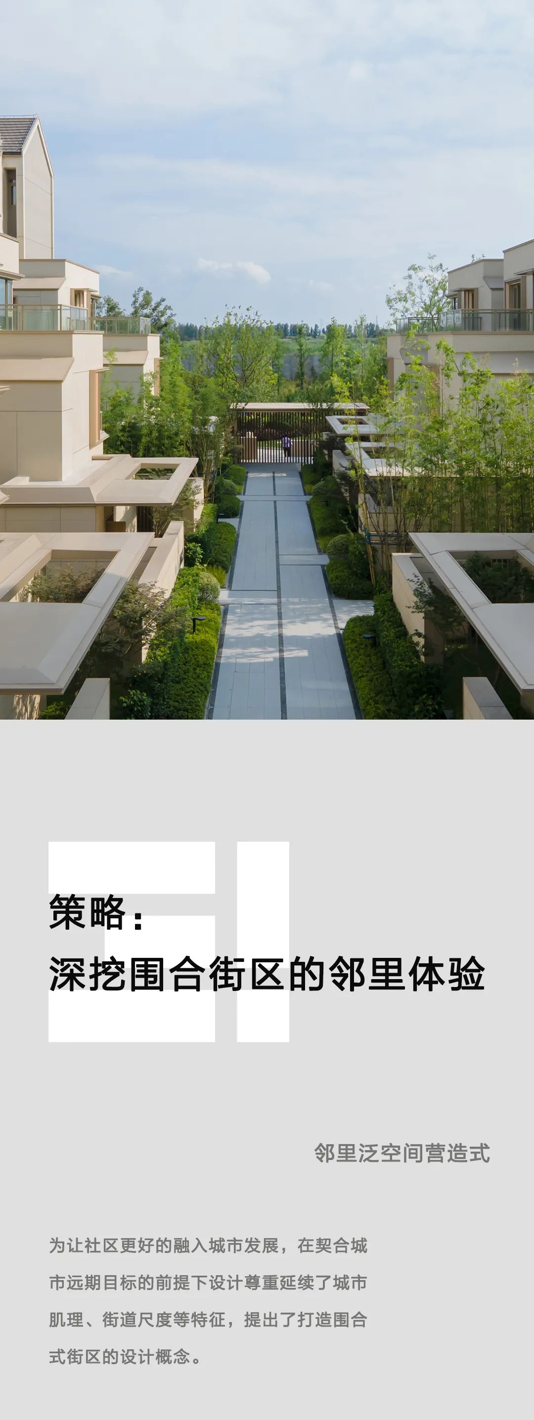 街区的围合,所形成的内庭空间既是半开放的公共空间,也是半私密的专属空间。这也是我们在本案中做街巷的重点,将关注点转移到私密性、半开放性与开放性的融合,将院墅空间与社区,体验者与自然环境进行紧密结合。