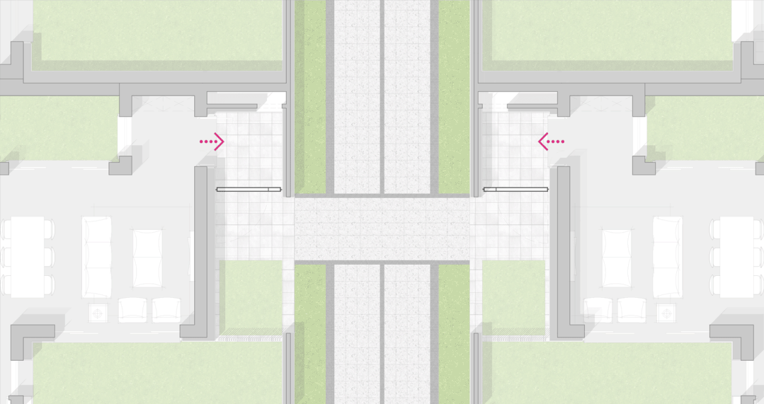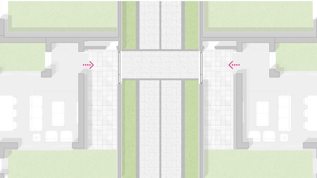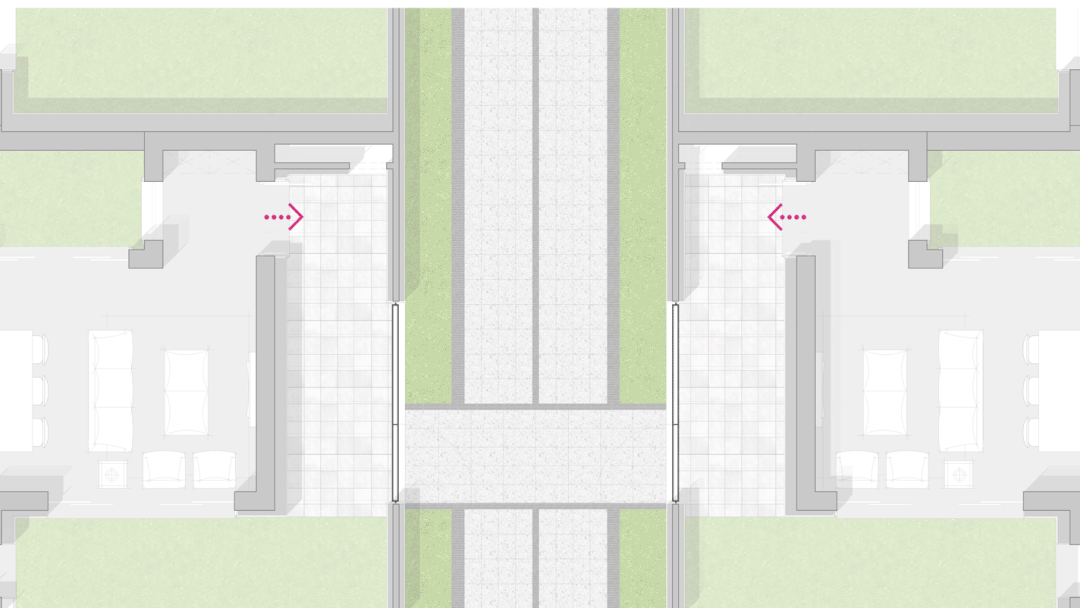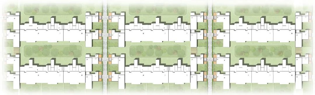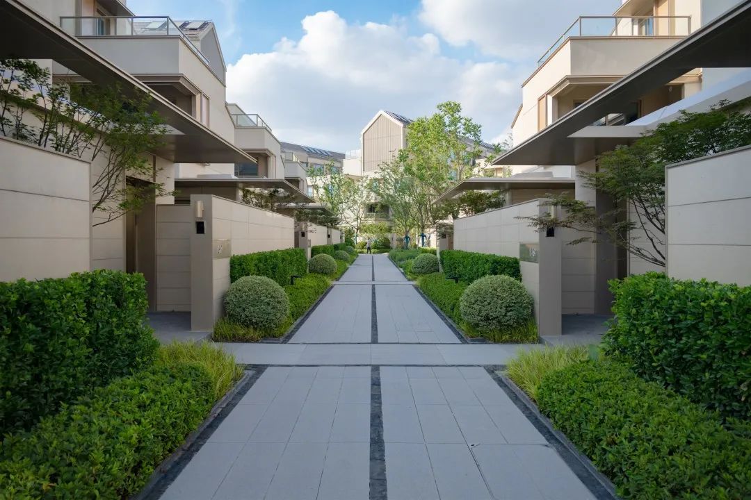 街区的围合,所形成的内庭空间既是半开放的公共空间,也是半私密的专属空间。这也是我们在本案中做街巷的重点,将关注点转移到私密性、半开放性与开放性的融合,将院墅空间与社区,体验者与自然环境进行紧密结合。