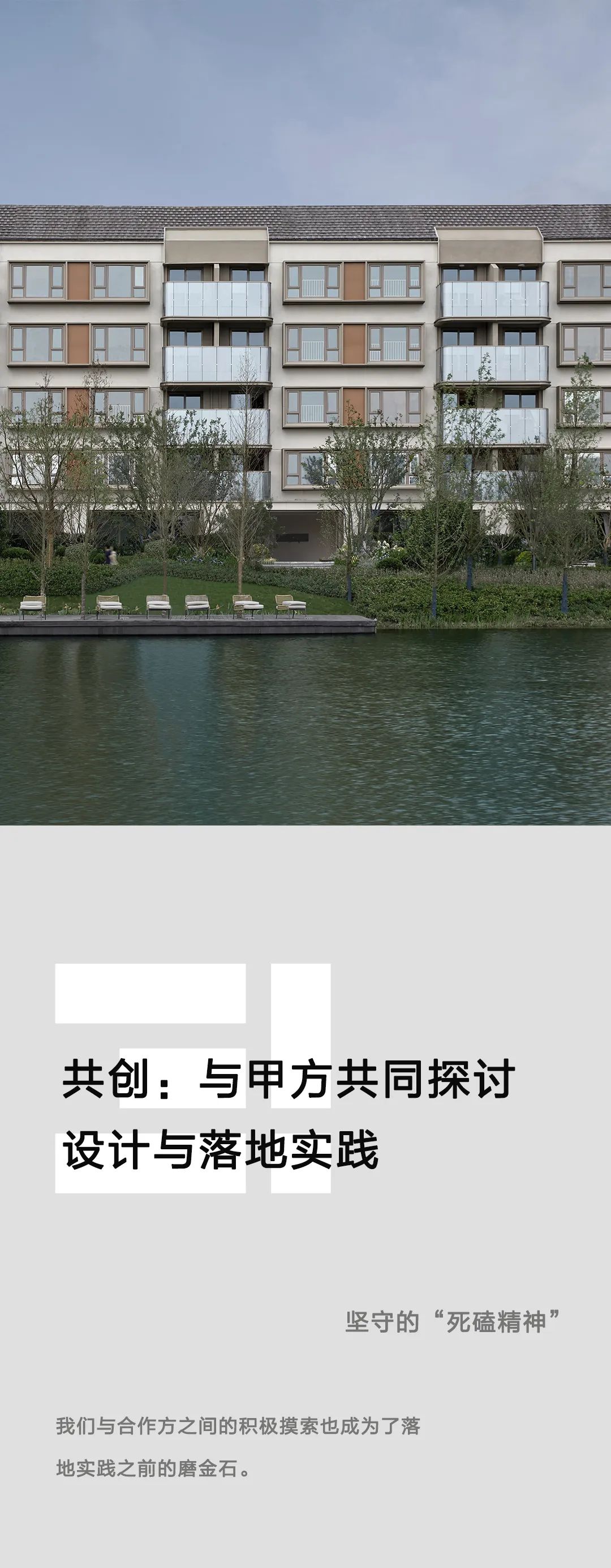 凭借着这股从项目伊始就坚守的"死磕精神",我们与甲方共探共创,历经多个“回合”,整个空间场景营造出低密湖居该有的模样。