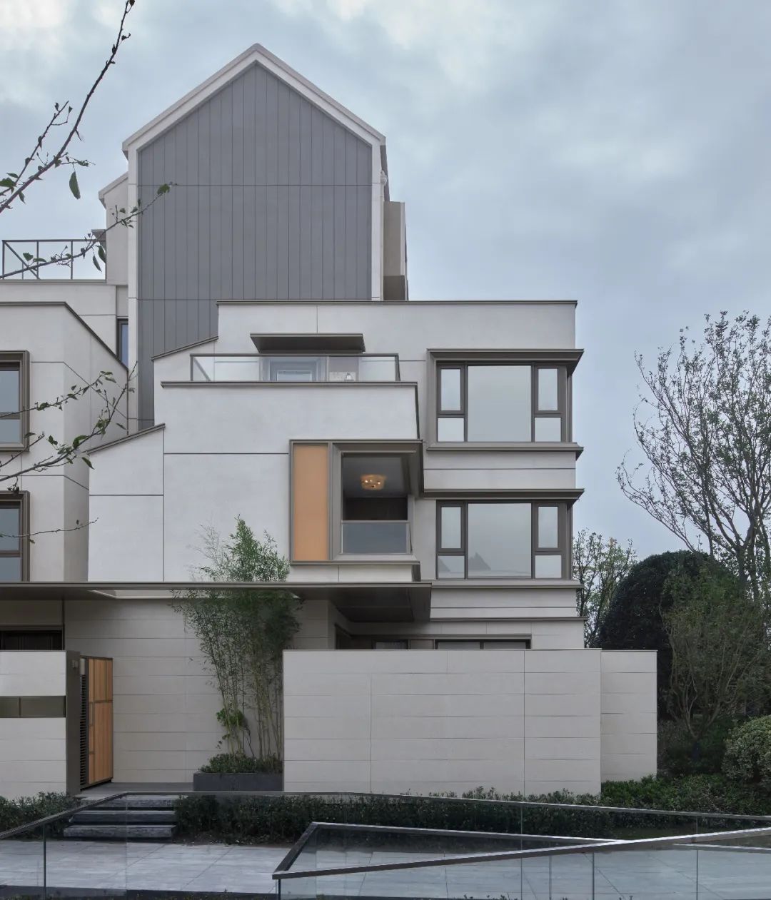 但我们不甘心只做传统的合院产品,于是在严苛的限墅政策下,在经历了一遍又一遍的“推到重来”之后,于安亭掌心湖畔,设计以不同寻常的表达方式,打造了一个无可复制的低密产品-莱茵半岛。