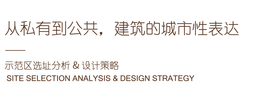 根据城市主要人流方向,整个示范区的范围锁定在城市主干路春风路的沿街位置。我们通过对空间的公共性、人流展示面的延展性以及街角的昭示性等多维度展开思考,提供了几种选址解决方案。