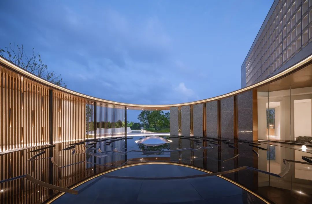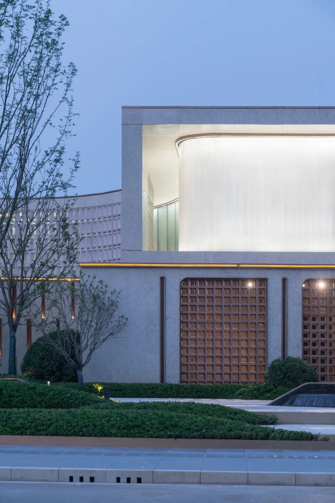 建筑主体呈现出雕塑般的优雅形体,通过对材料颜色、材质、纹理、亮度、透明度、灯光的使用,立面上下错层的部分镂空,给我们视觉和感知上带来丰富的变化,依时而变的光影魅力。