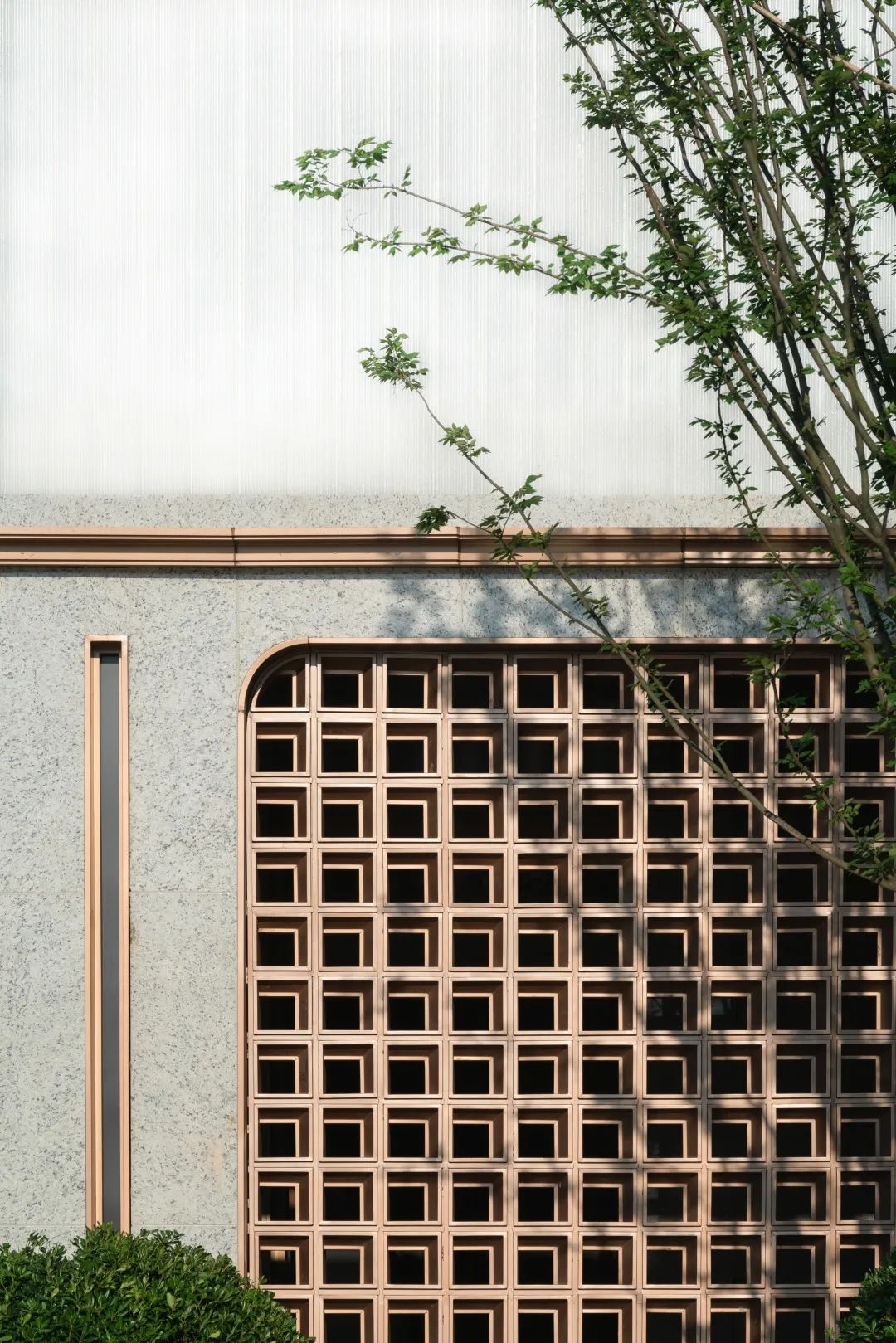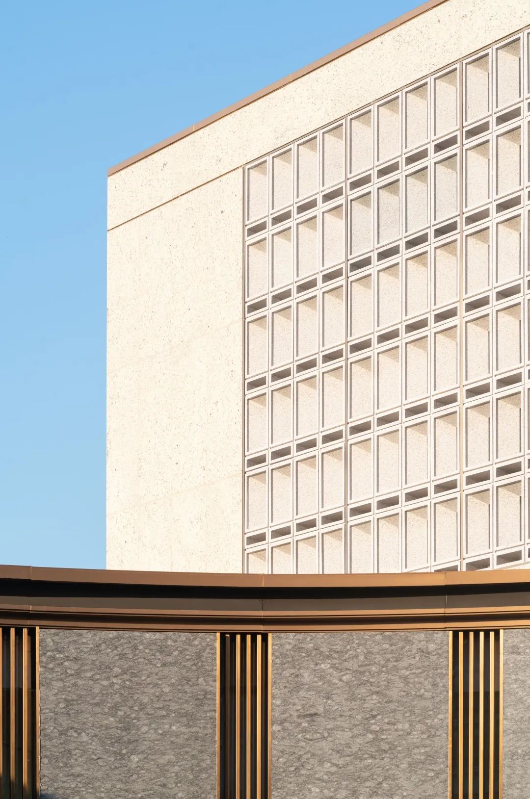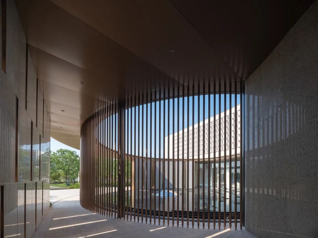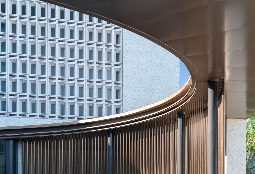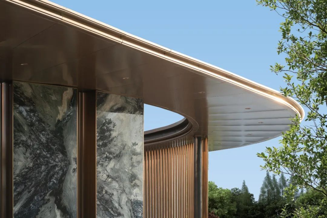 为了更好地传递出褐石系列的精致优雅,花格立面创新性的采用了热转印铝板的新颖方式,完美再现了石头该有的质感纹理,以现代的施工方式表达着历经岁月沉淀的优雅与从容。