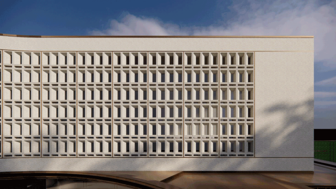 为了加强建筑的光影变化,我们仔细研究推敲当地的光照变化规律,在严格测算之后形成了现在富于秩序感与美学性的花格斜面,创造出一种精致而丰富的外观,为建筑立面增添了另一个立体空间层次。