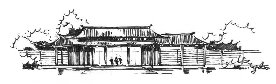 青承门采用中轴对称的格局,恢弘大气。我们复刻了传统的建筑形制,但在古典的基础上我们结合了现代的审美需求,在大门两侧,我们设计了不对称的景墙以此打破传统的平衡感。