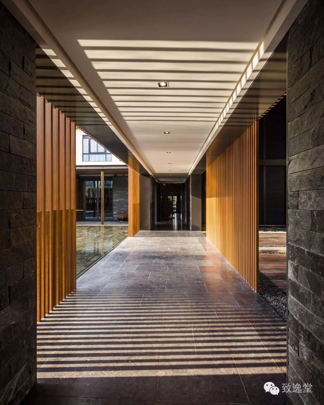 设计中木格栅的运用,于水、于光做了不同的尝试。通过空间的切割,让光影的变化显得极具层次。同时,格栅的运用解决了很多立面的问题。