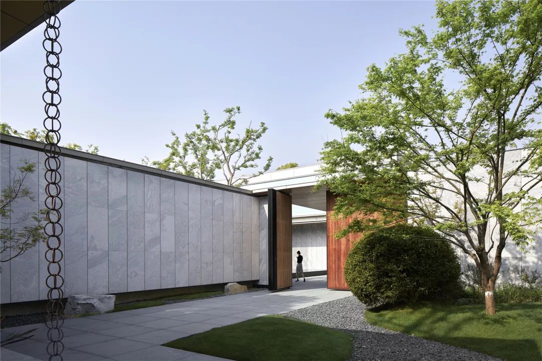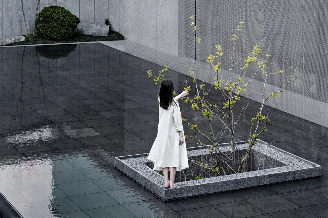 致逸设计团队将难点视作亮点,利用原本狭窄的地形,在螺蛳壳中做道场: 布局时借鉴园林中一波三折、移步异景的空间开合序列,把示范区打造成一座融合山、水、树于一体的精品小型园林。未来,这里将作为公共空间向社区敞开,成为苏州人轻茶慢语的一处生活景观,与之相对的,强调私密性的内部住宅区景观则在此后次第展开,多重层次院落延续江南园林的精致意趣。