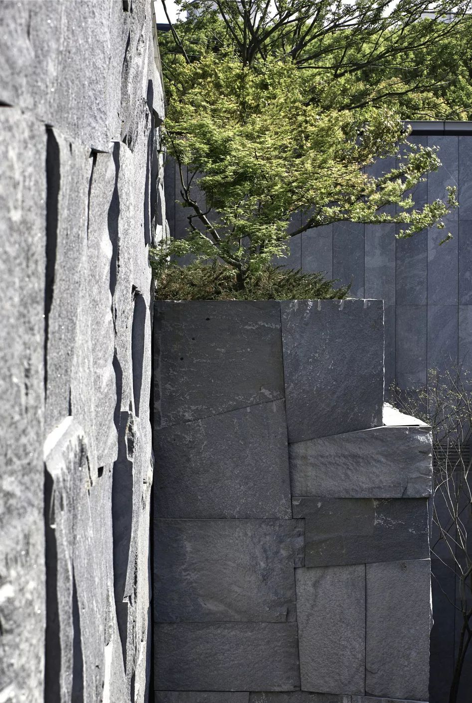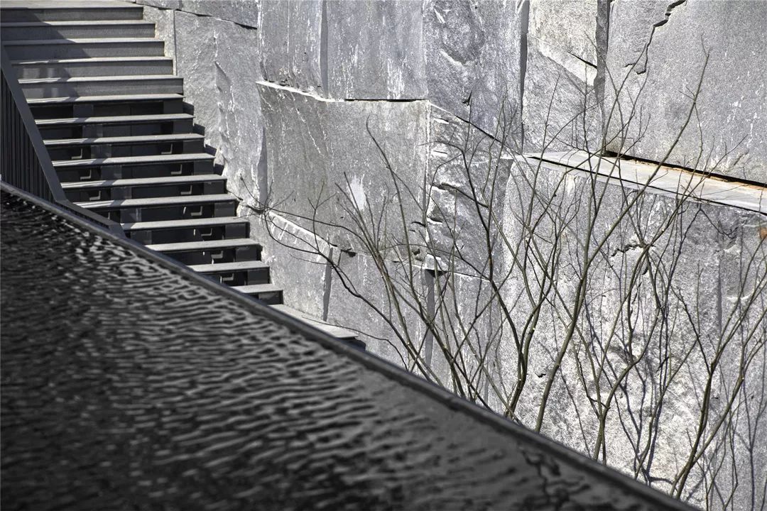 叶圣陶曾在《苏州园林》中提及造园技艺,“可以说是一项艺术而不仅是技术……全在乎设计者和匠师们生平多阅历,胸中有丘壑,才能使游览者攀登的时候忘却苏州城市,只觉得身在山间”。尽管选材、切割巨大的原石、盲吊势必为设计和施工增加额外的难度,设计师最着力之处之一是对下沉庭院石屏的处理,千岩竞秀满足对山的想象,使观者得复返自然之境。