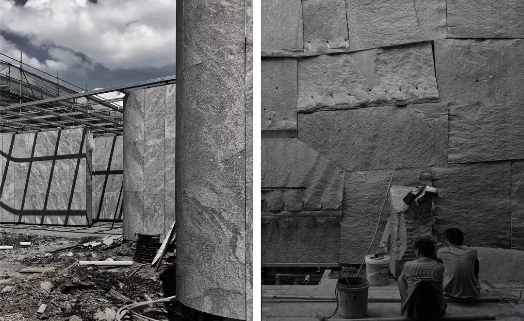 ◎选材、切割巨大的原石、盲吊为设计和施工增加额外的难度。