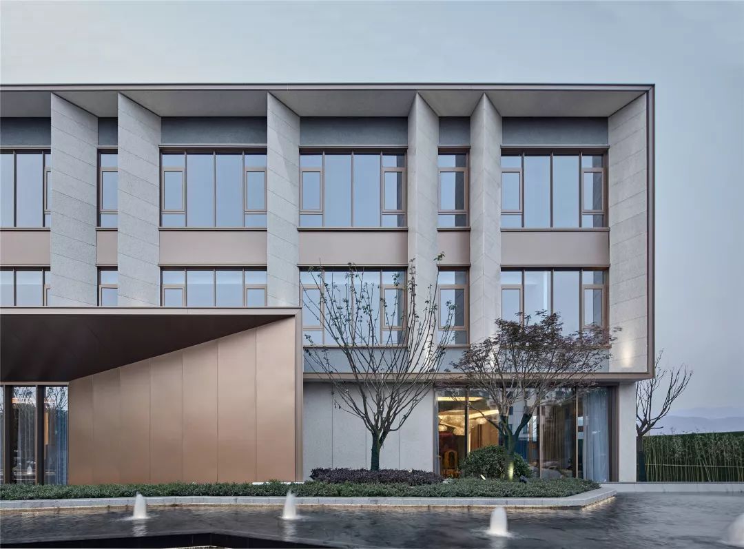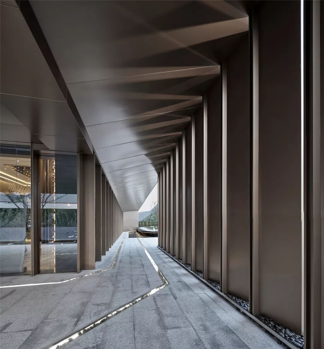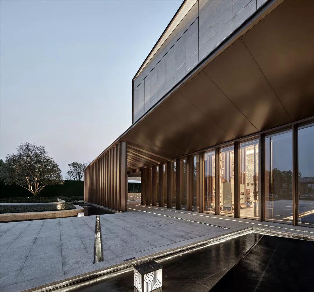 最后,为了前期售楼功能而设置的隐藏式入口,打造起承转合的空间序列,形成从城市公共界面到私密建筑空间的转化,丰富来访客户的观赏体验。