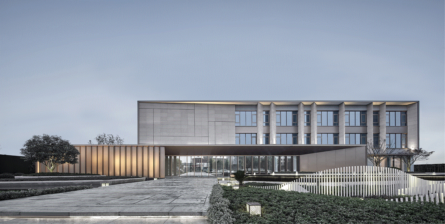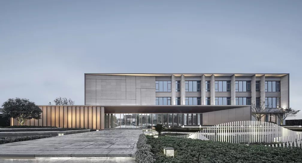 在立面设计中,通过引入一系列相互咬合和穿插的直线,自然形成丰富而有序的韵律。最大程度地统一了售楼处与幼儿园这两个完全不同使用功能建筑的调性,亦为建筑确定了立面逻辑,变化中富有序列感。