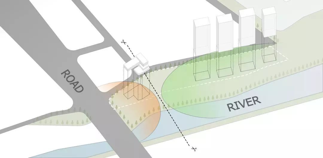 面对蜿蜒流淌的会昌河,植被充沛的河岸公园,设计师希望将最好的环境融入住区设计,将更多的公共空间还给城市居民。