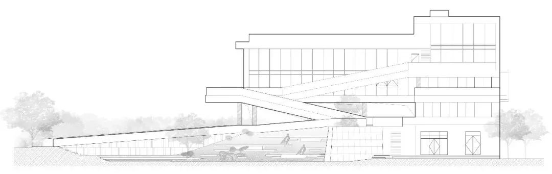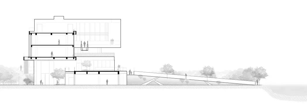 同时,将整个建筑架空层与整体沿街面以及公园空间完全的打开,而在内部场地中则营造丰富且连续的竖向变化。