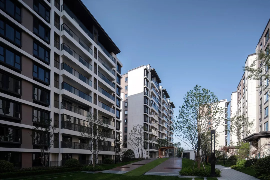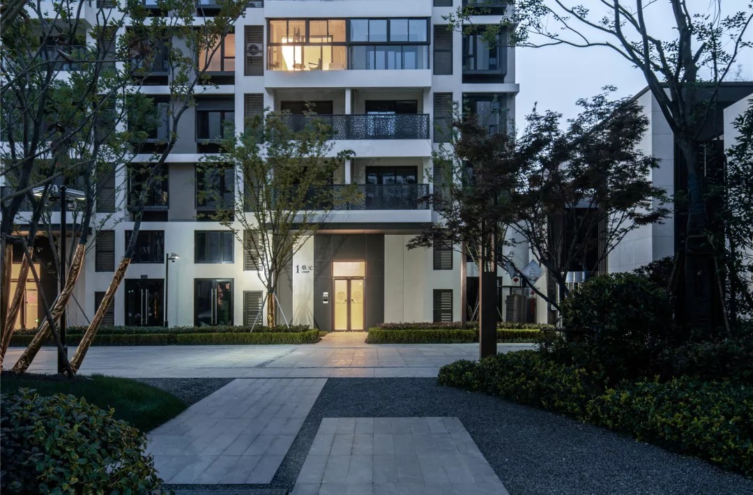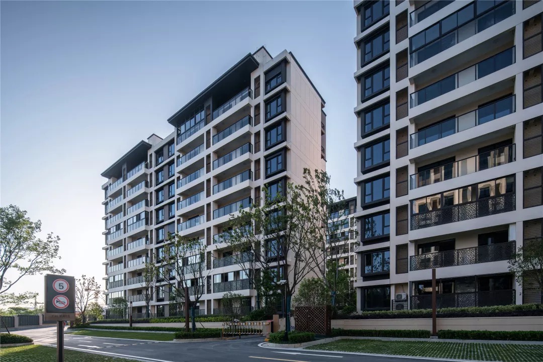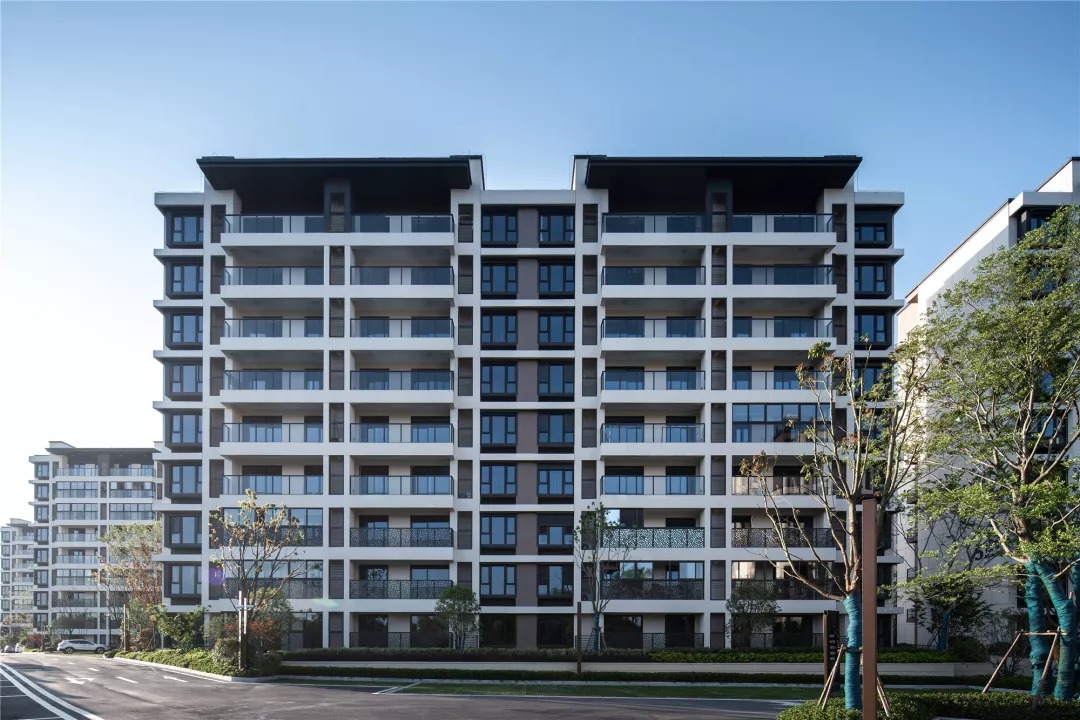 建筑的造型设计现代优雅、简洁明快,在休闲度假风格和传统中式风格之间平衡,形成新苏式立面风格。