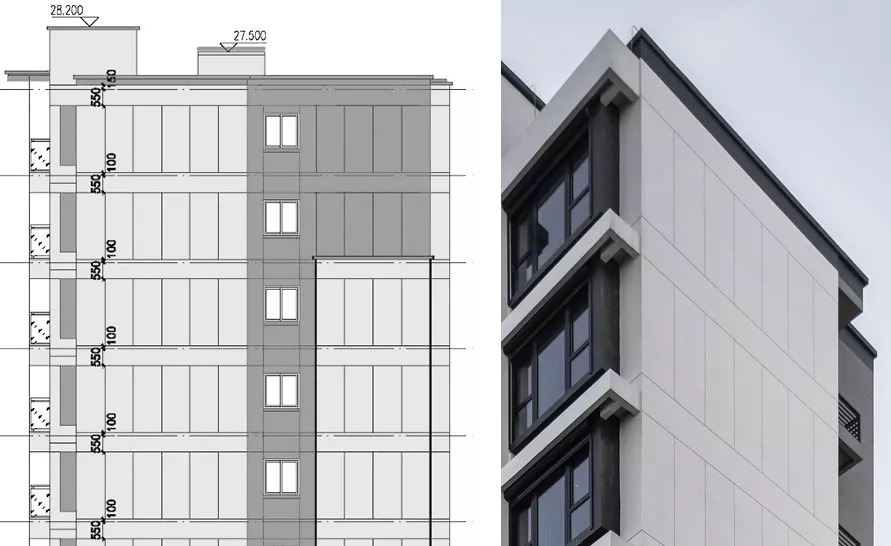 △ 建筑头部,女儿墙压顶和挑檐线脚,突显建筑形体关系