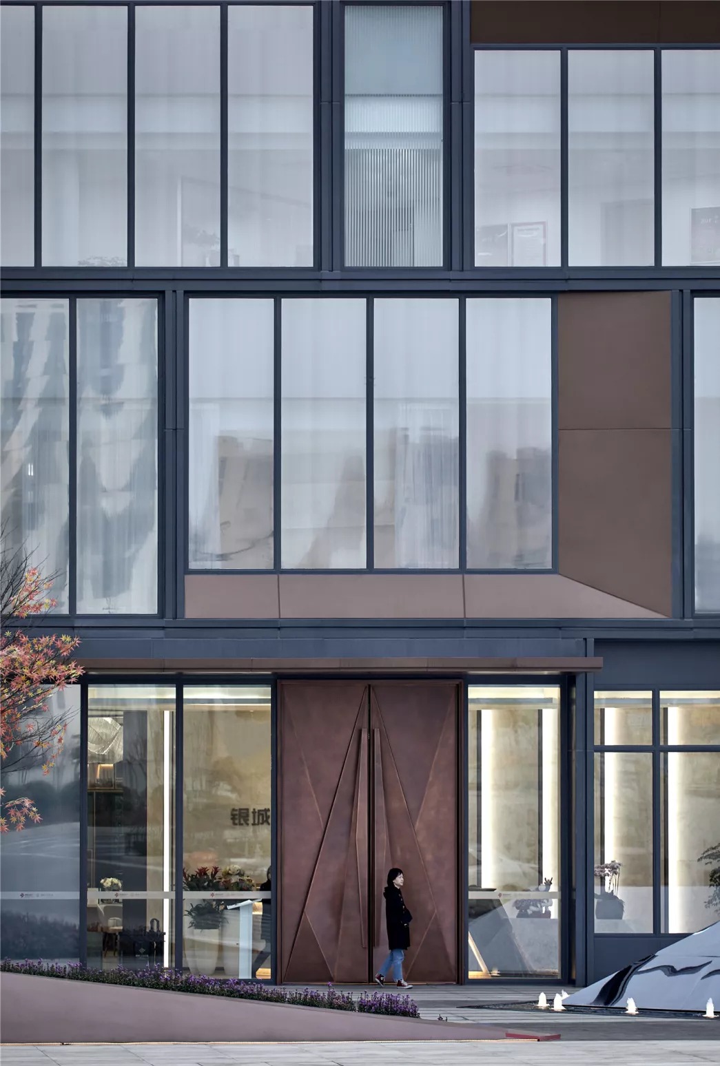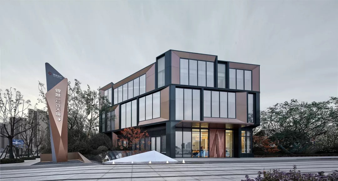 玻璃轻盈通透,铝板稳重温暖,这两种不同特性的材料,通过不同维度的穿插排列组合,形成理性的空间序列和丰富的空间形式。