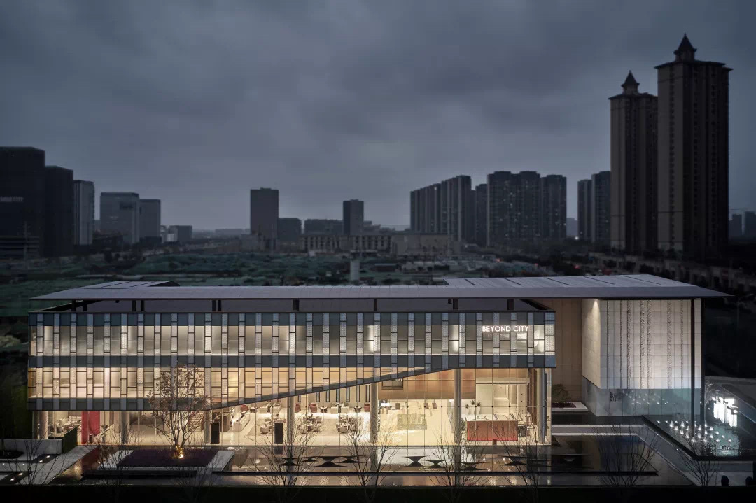 在空间的考量上,我们以弹性灵活为设计要点,兼容展示特性与体验之感。集合建筑、景观、室内等专家组的高效协同,设计以“悬浮空间”为意向,内部功能空间犹如从上至下“悬挂”,顶部挑空形成开阔的视野,同时保证人行空间的流畅度。从此,体验者变成了流动的点,放慢步伐游溯,感受生活的美好。