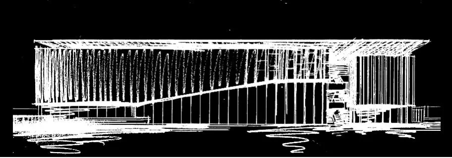 在这里,在城市广场与室内空间之隔通过廊柱与挑檐的组合方式形成高挑的灰空间,以简洁挺拔的姿态过渡室内外空间,奠定了艺术馆的格调肌理。