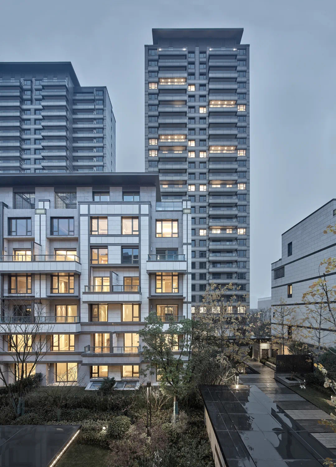 北侧高层住区注重精致舒适的体验感,中心景观与运河美景尽收眼底,视野开阔。地上地下双大堂的全楼幢应用,结合兼具柔软与张力的铝板材质,构建独具匠心的入户体验。