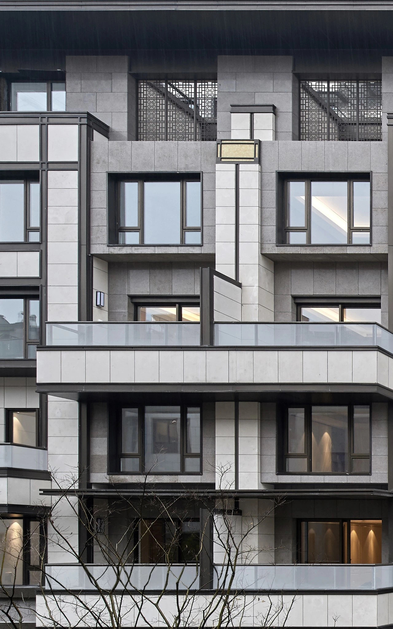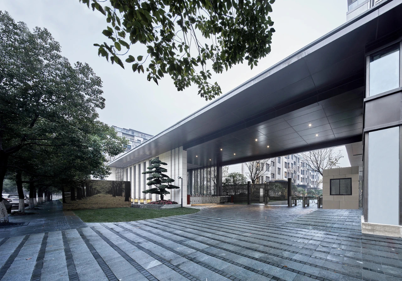住区细节处设计注重以现代简约与新中式元素提炼融合的方式,将地域元素符号升级优化,既符合当下时代精英大众的审美,又具有精致细腻的未来时尚度。
