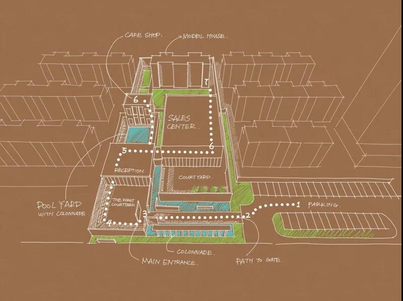 LOMO生活馆选址位于红旗港路主入口,地块中轴线与南侧城市绿地和市政河流交汇处。如何最大化的利用场地条件,在有限的空间格局下,营造出属于世家系精致优雅的生活,创造符合当下生活场景的体验馆,是本项目设计思考的重点。